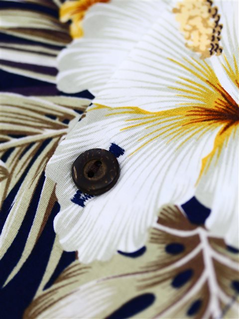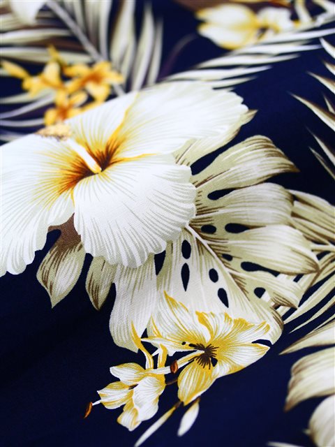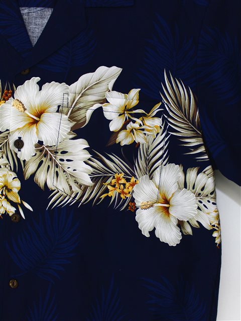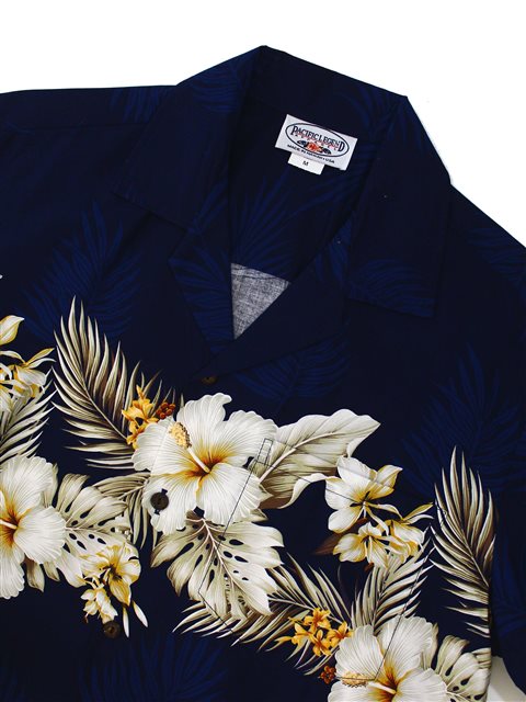 Pacific Legend - Hibiscus Navy Cotton Men's Border Hawaiian Shirt