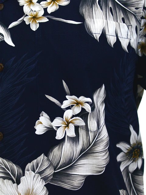This 100% cotton Hawaiian shirt is a classic choice, crafted with care in Hawaii. The navy color with white beige floral design creates a uniquely Hawaiian design that is casual but can still be used in formal settings.