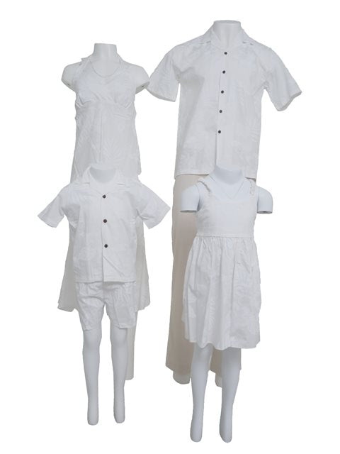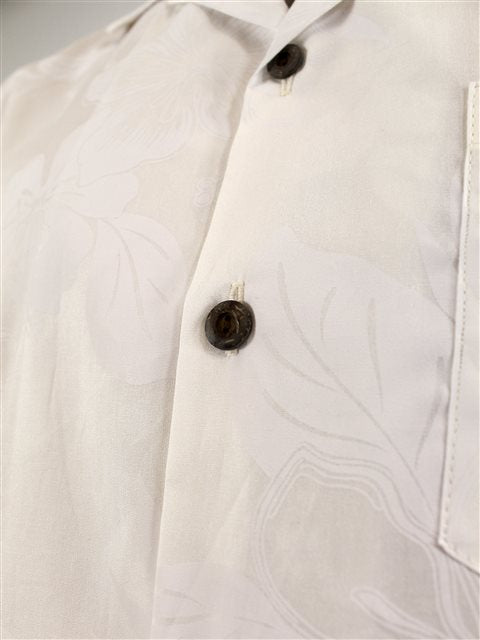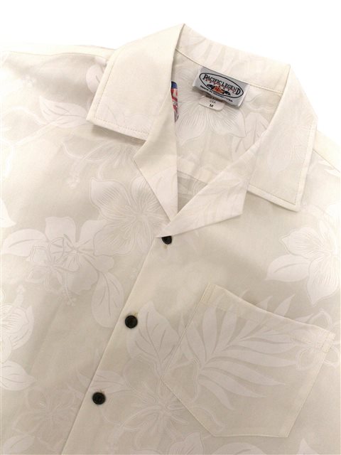 This classic Aloha shirt is made of 100% cotton and Made in Hawaii. The White design features a white floral pattern giving a subtle white on white design.  This shirt is great for celebrations like weddings and parties.