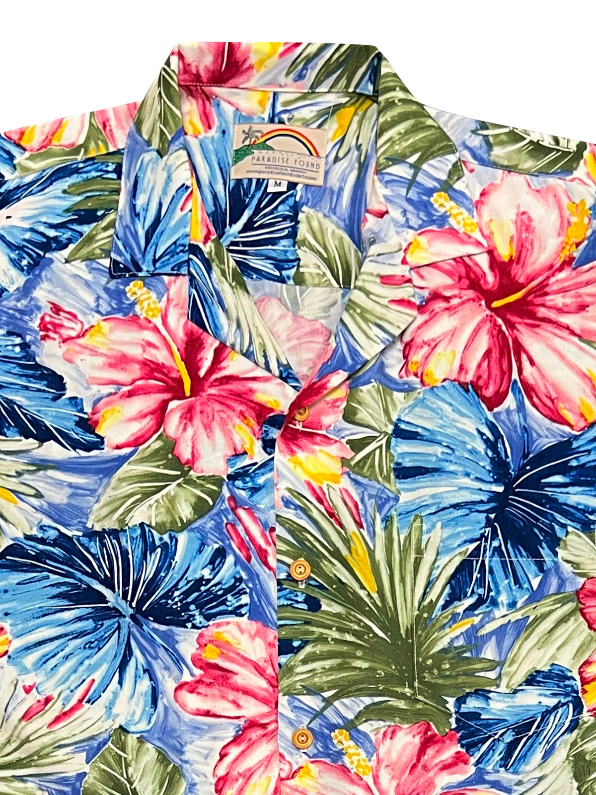 Paradise Found - Painted Hibiscus Blue Men's Hawaiian Shirt