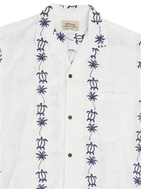 Royal Hawaiian Creations - Blue Honu White Cotton Men's Hawaiian Shirt