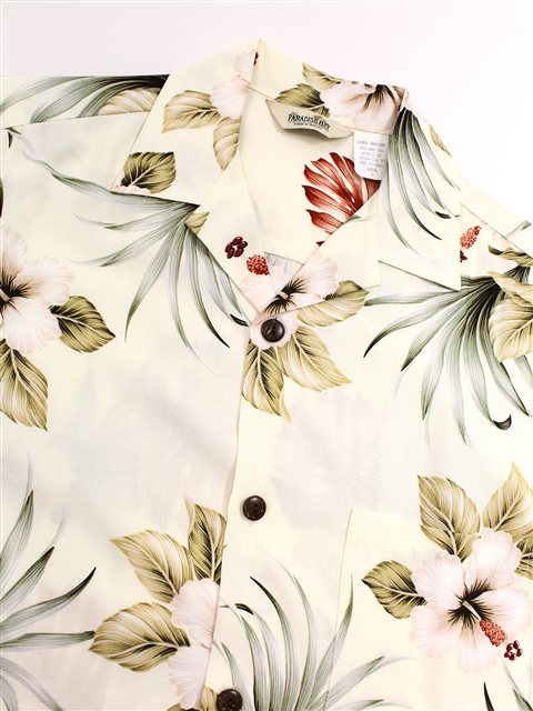 Royal Hawaiian Creations - Hibiscus & Monstera Cream Rayon Men's Hawaiian Shirt