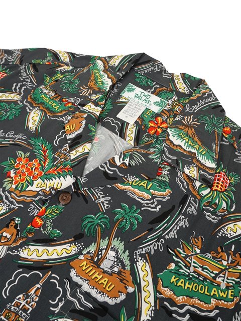 Two Palms - Friendly Isle Charcoal Rayon Men's Hawaiian Shirt