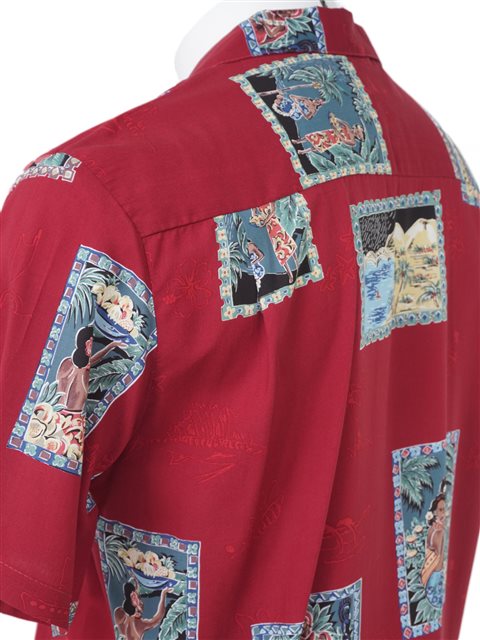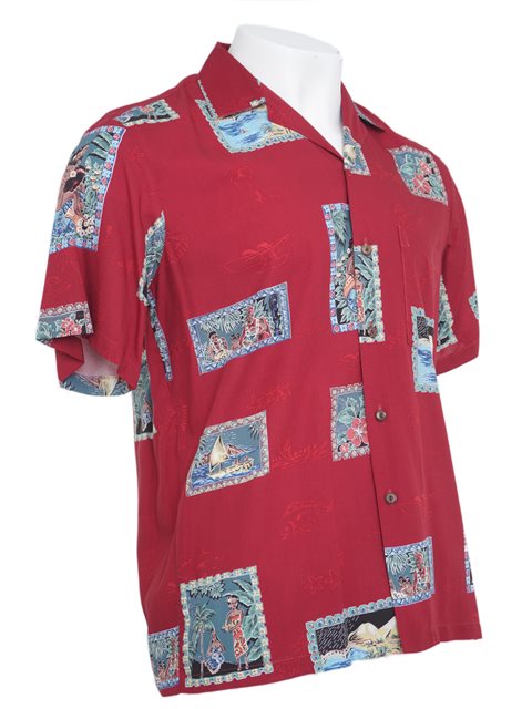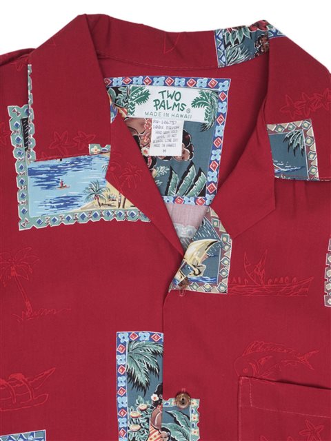 Two Palms - Two Palms Postcard Red Rayon Men's Hawaiian Shirt