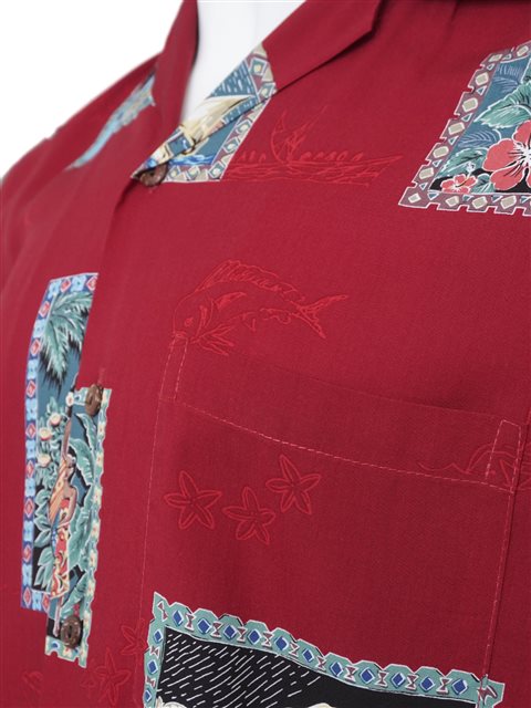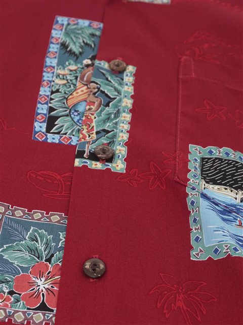 Made from 100% rayon, this Aloha shirt features a classic vintage postcard print and a matching left chest pocket for a seamless look. Coconut buttons and an open collar add to its relaxed, island-inspired style. Crafted in Hawaii, this shirt has a laid-back, vintage feel—perfect for casual days, weekend outings, or just embracing the aloha spirit wherever you are.