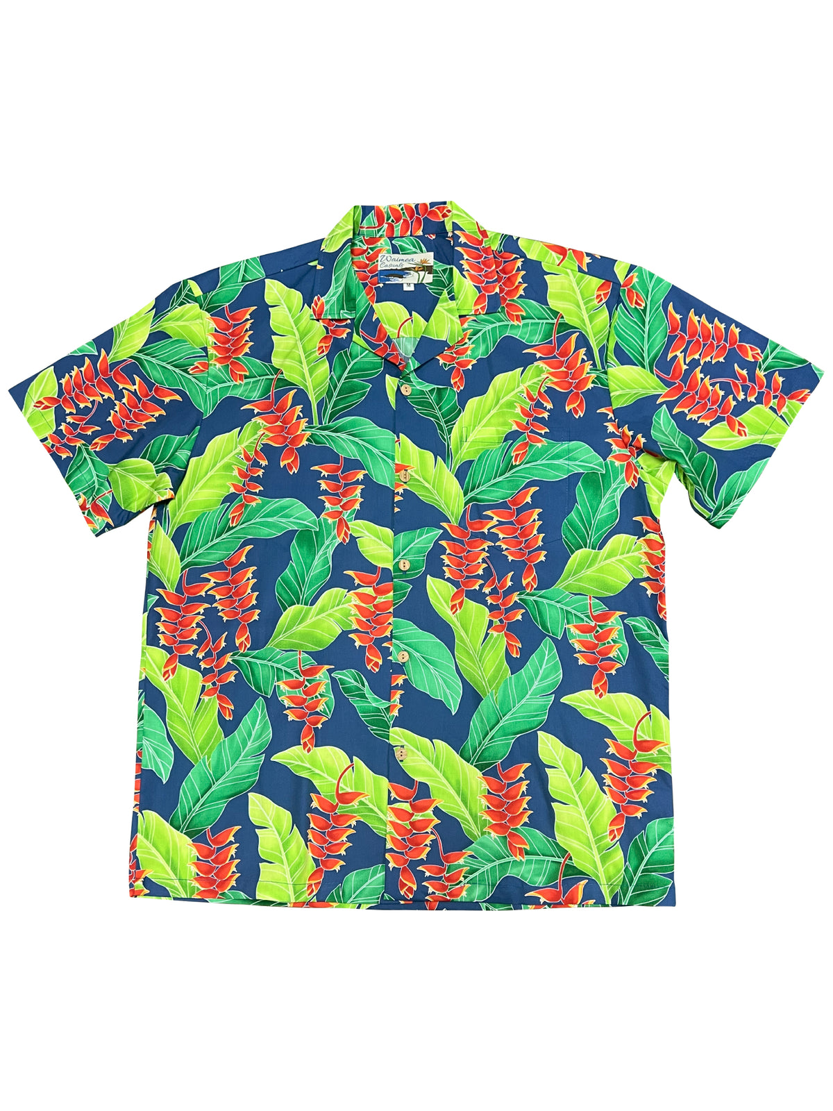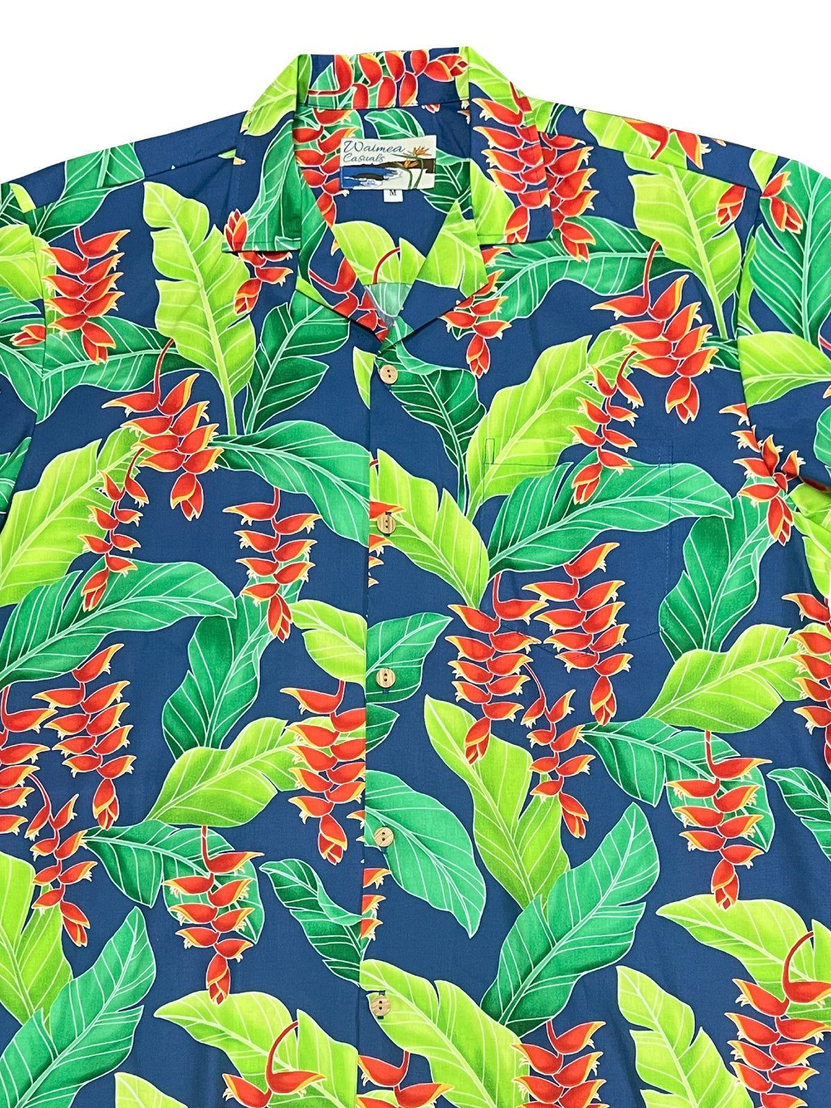 Waimea Casuals - Hanging Heliconia Royal Cotton Men's Hawaiian Shirt