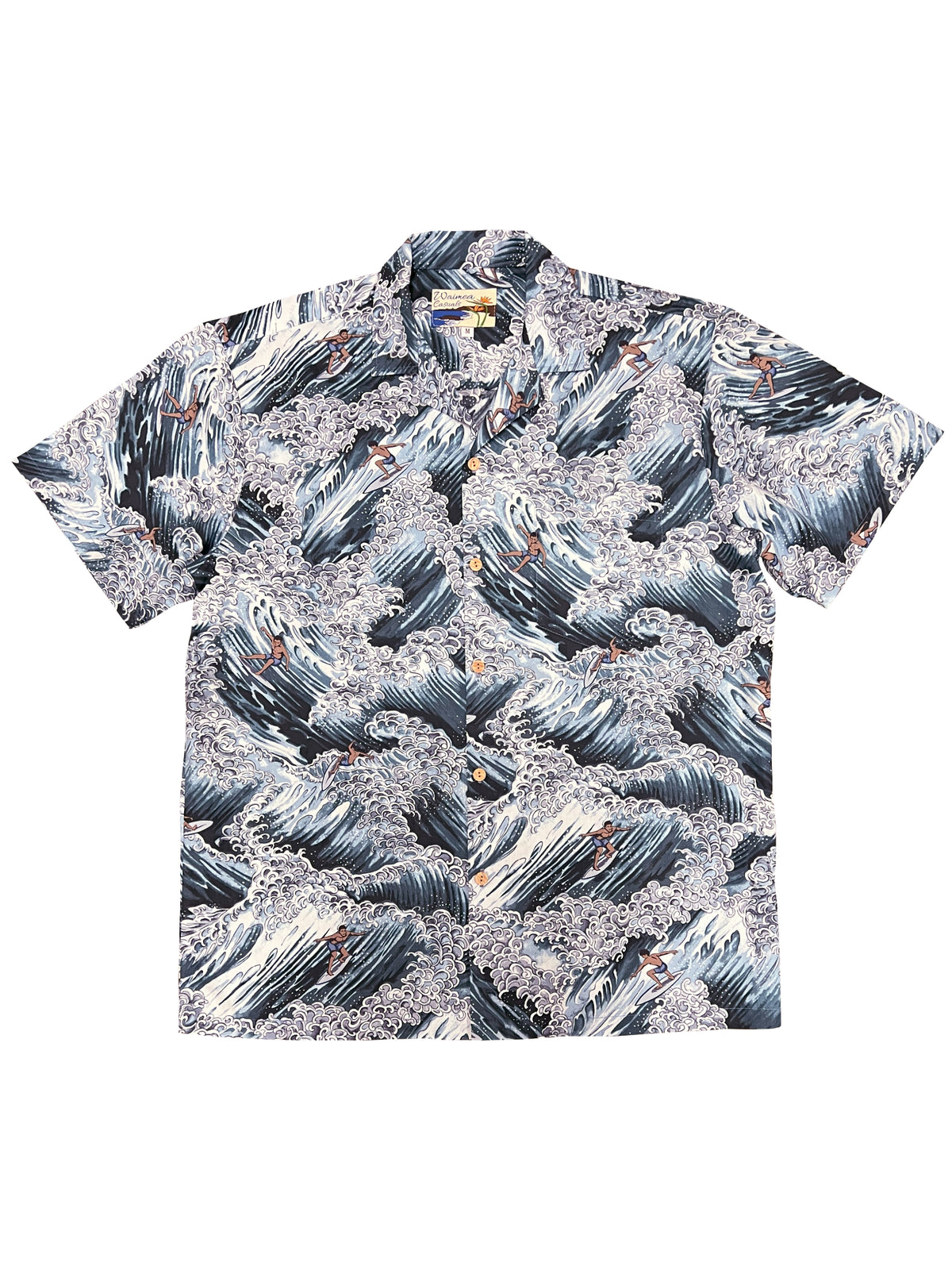 This surfer design print pays homage to the surfing lifestyle that is part of the history of Hawaii. May this shirt give you the exhilarating confident feeling of a true wave rider, even if you're not. Whether you're hitting the beach or just want to embody that carefree spirit, this shirt is perfect for any casual occasion.