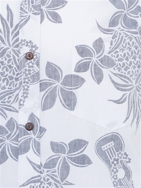 Two Palms - Ukulele White Cotton Men's Reverse Printing Hawaiian Shirt
