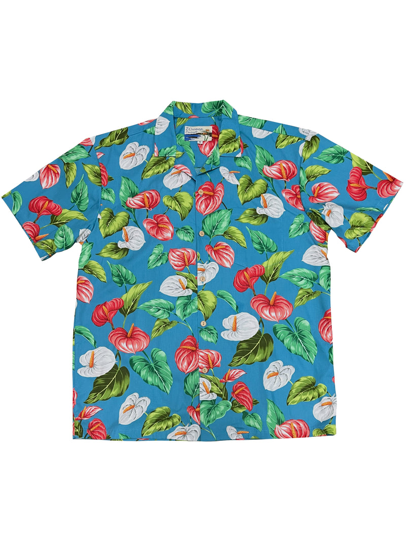 Waimea Casuals - Anthurium Turquoise Cotton Men's Hawaiian Shirt