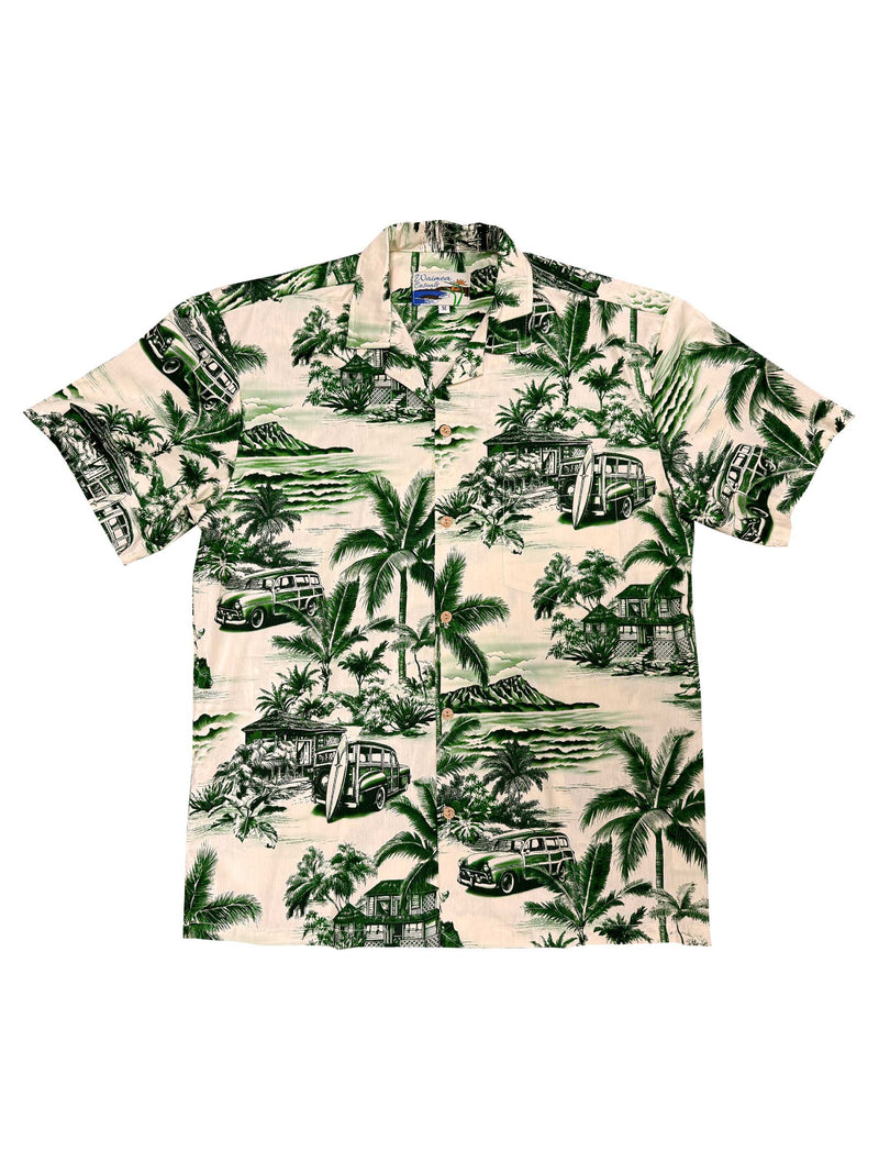 Waimea Casuals - Paradise Woody Green Cotton Men's Hawaiian Shirt