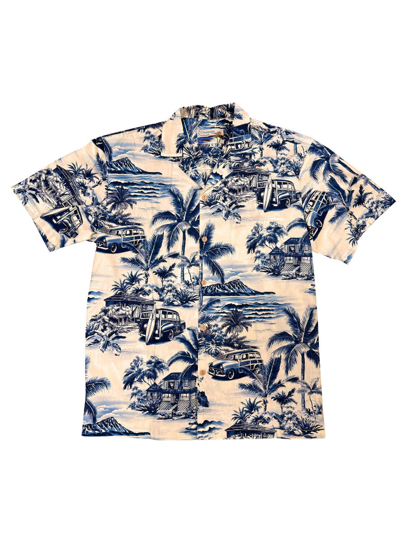 Waimea Casuals - Paradise Woody Blue Cotton Men's Hawaiian Shirt