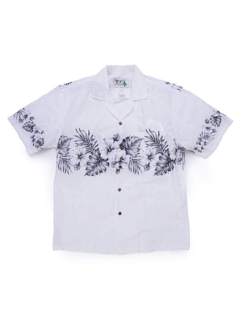 Ky's - Hibiscus Row White & Black Cotton Poplin Men's Hawaiian Shirt