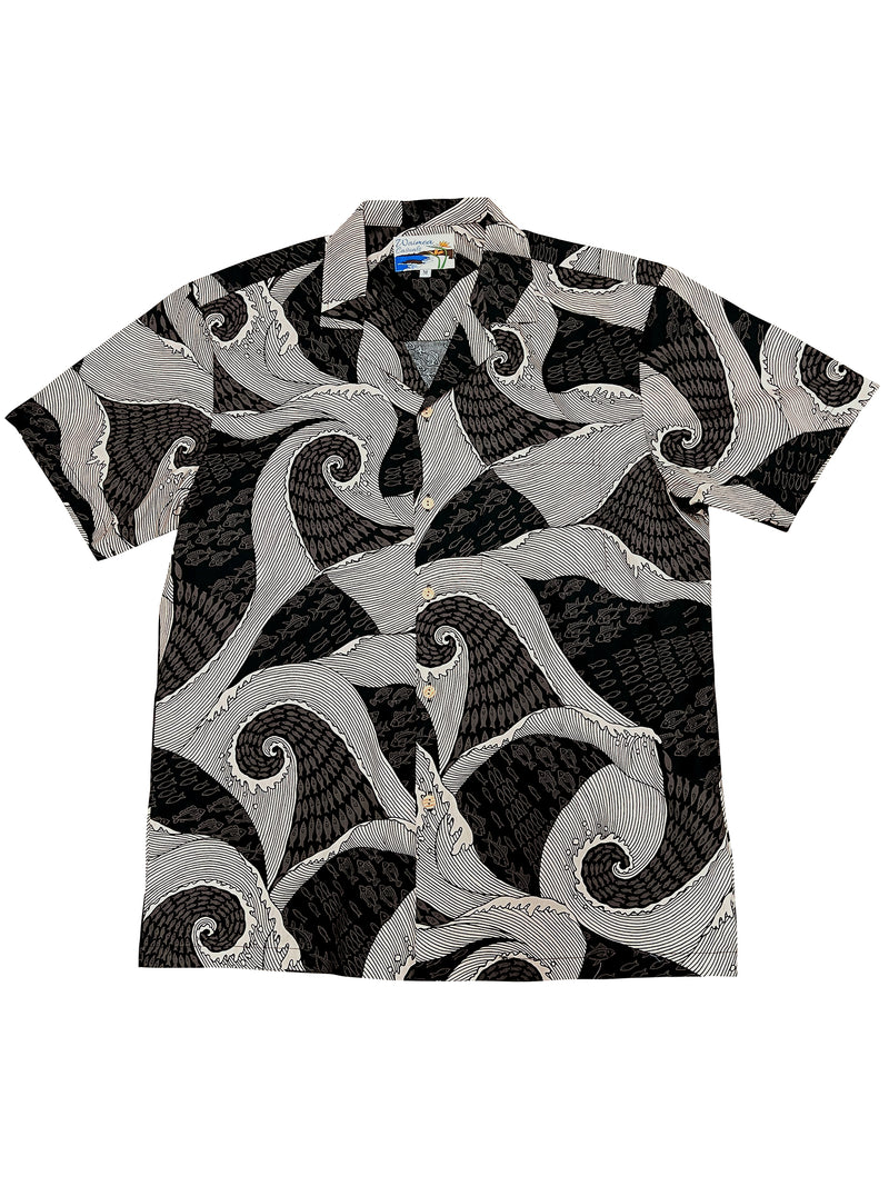 Waimea Casuals - Waves Black Cotton Men's Hawaiian Shirt