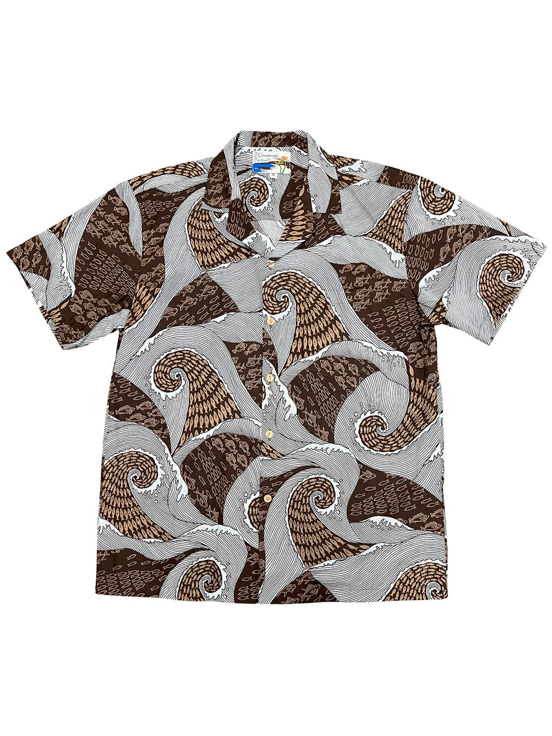 Waimea Casuals - Waves Brown Cotton Men's Hawaiian Shirt