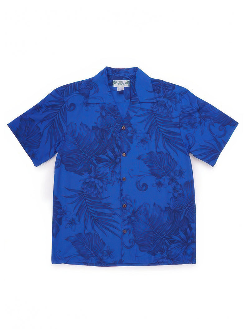 Two Palms - Monstera Ceres Royal Blue Cotton Men's Hawaiian Shirt