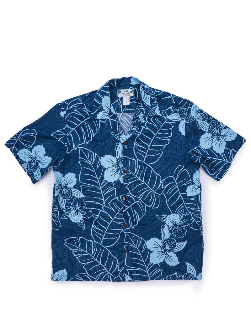 Two Palms - Kauai Navy Cotton Men's Reverse Printing Hawaiian Shirt