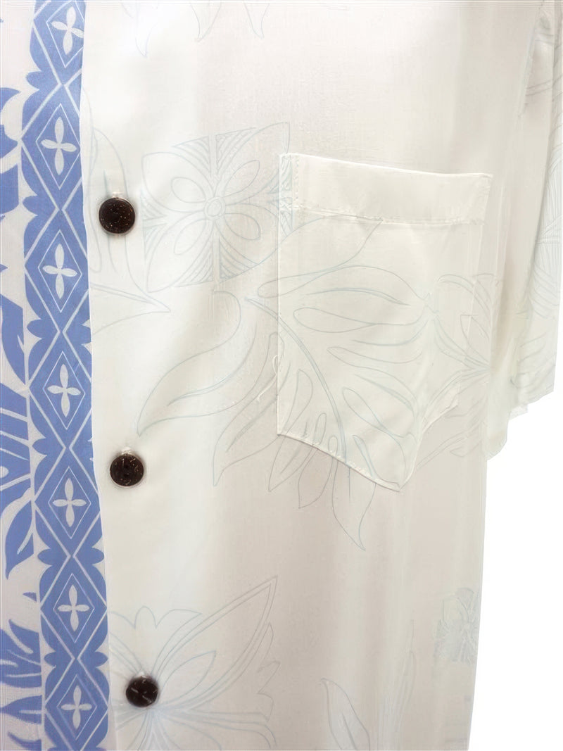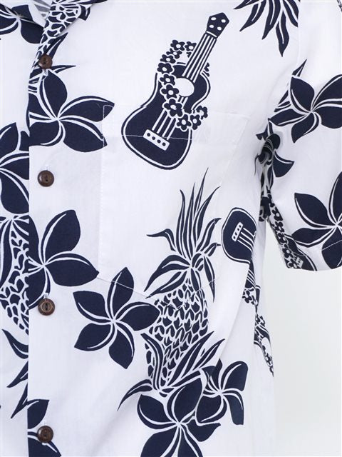 Two Palms - Ukulele White Cotton Men's Open collar Hawaiian Shirt