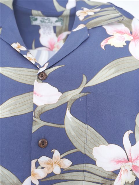 Two Palms - Pali Orchid Blue Rayon Men's Hawaiian Shirt