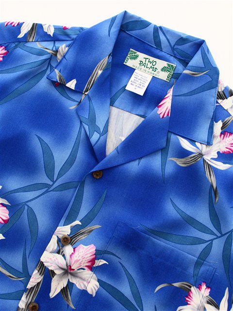 Two Palms - Midnight Orchid Blue Rayon Men's Hawaiian Shirt