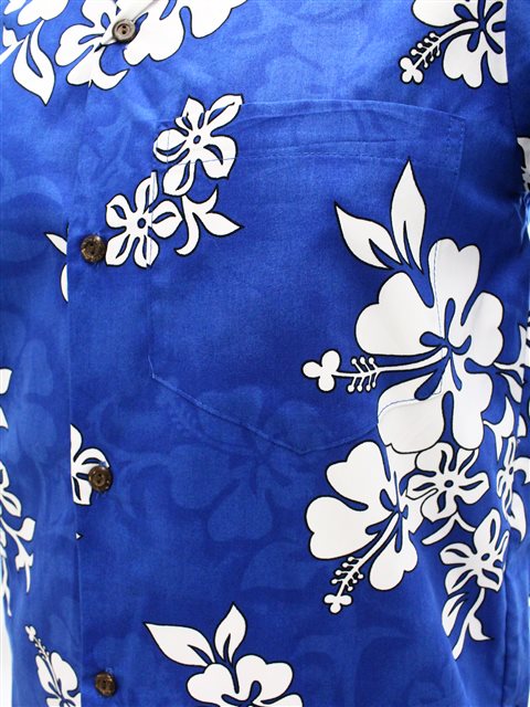 Pacific Legend - White Hibiscus Blue Cotton Men's Hawaiian Shirt