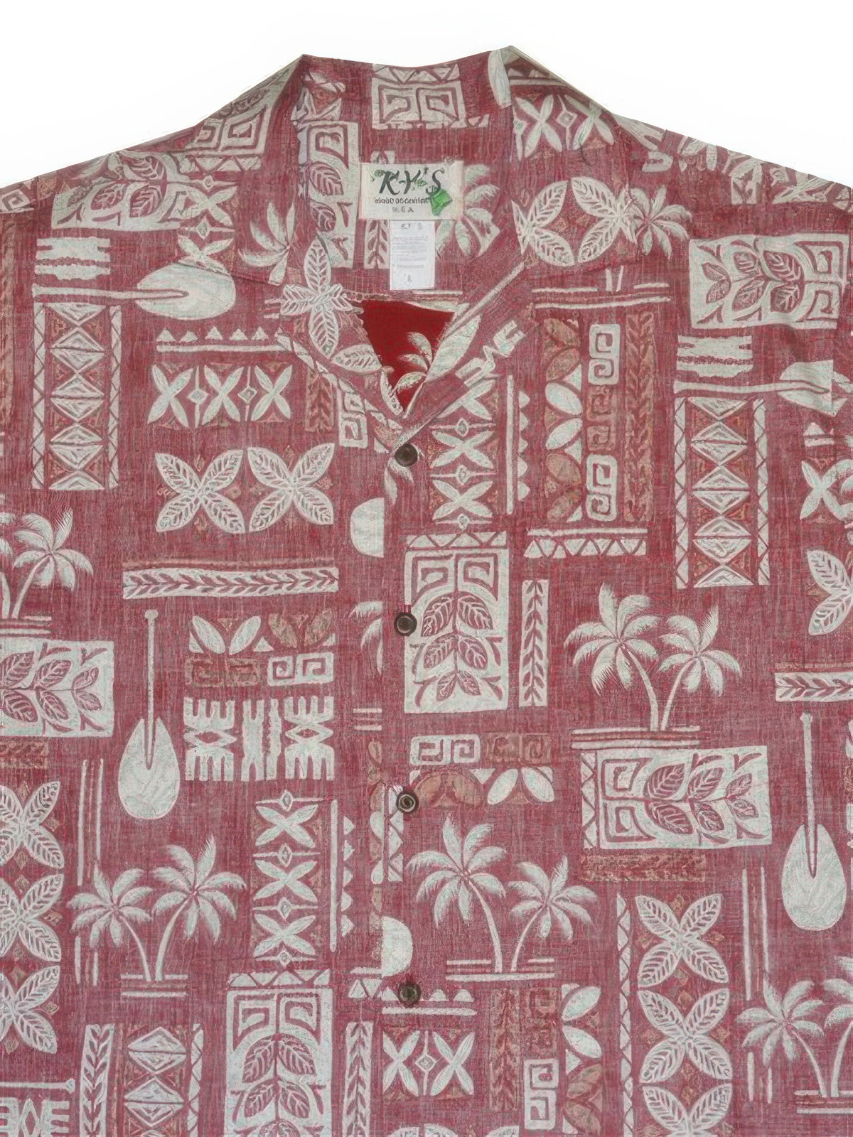 Ky's - Traditional Tapa Red Cotton Poplin Men's Hawaiian Shirt
