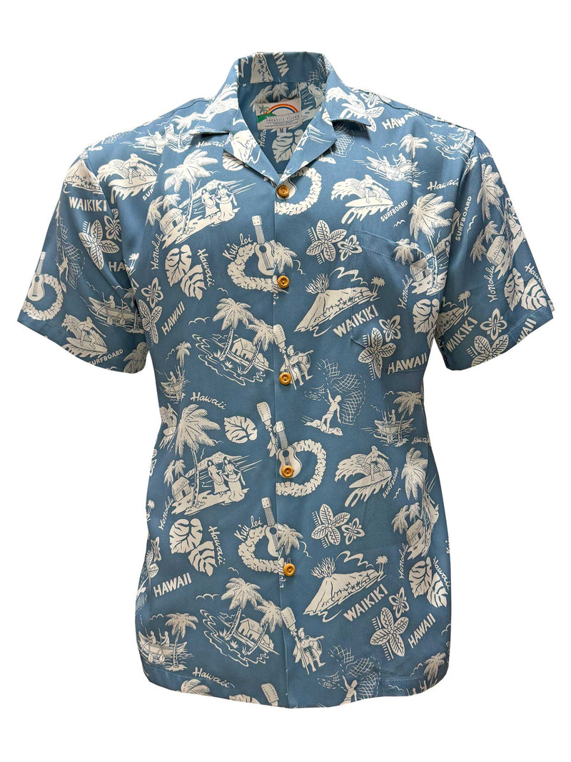 Paradise Found - Aloha Nostalgia Bay Blue Rayon Men's Hawaiian Shirt