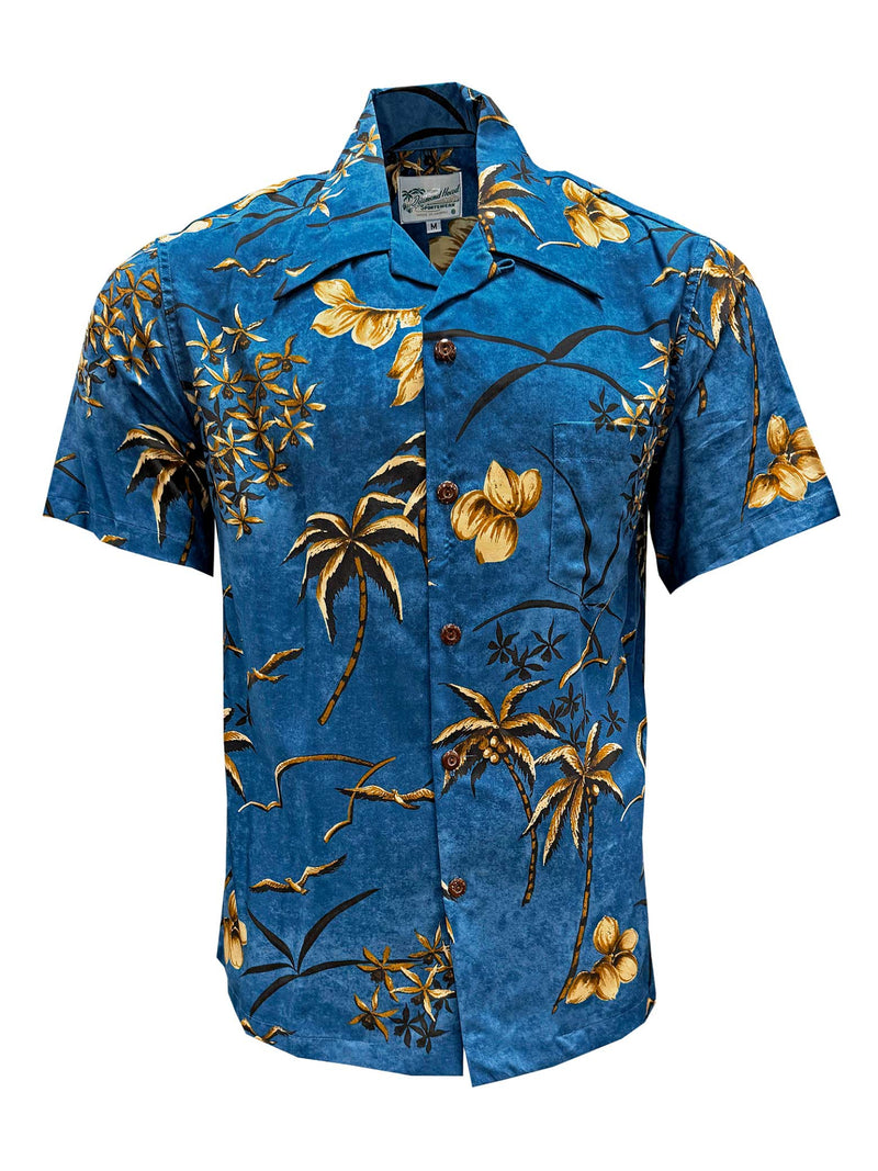Paradise Found - Retro Oasis Palms Blue Rayon Men's Hawaiian Shirt