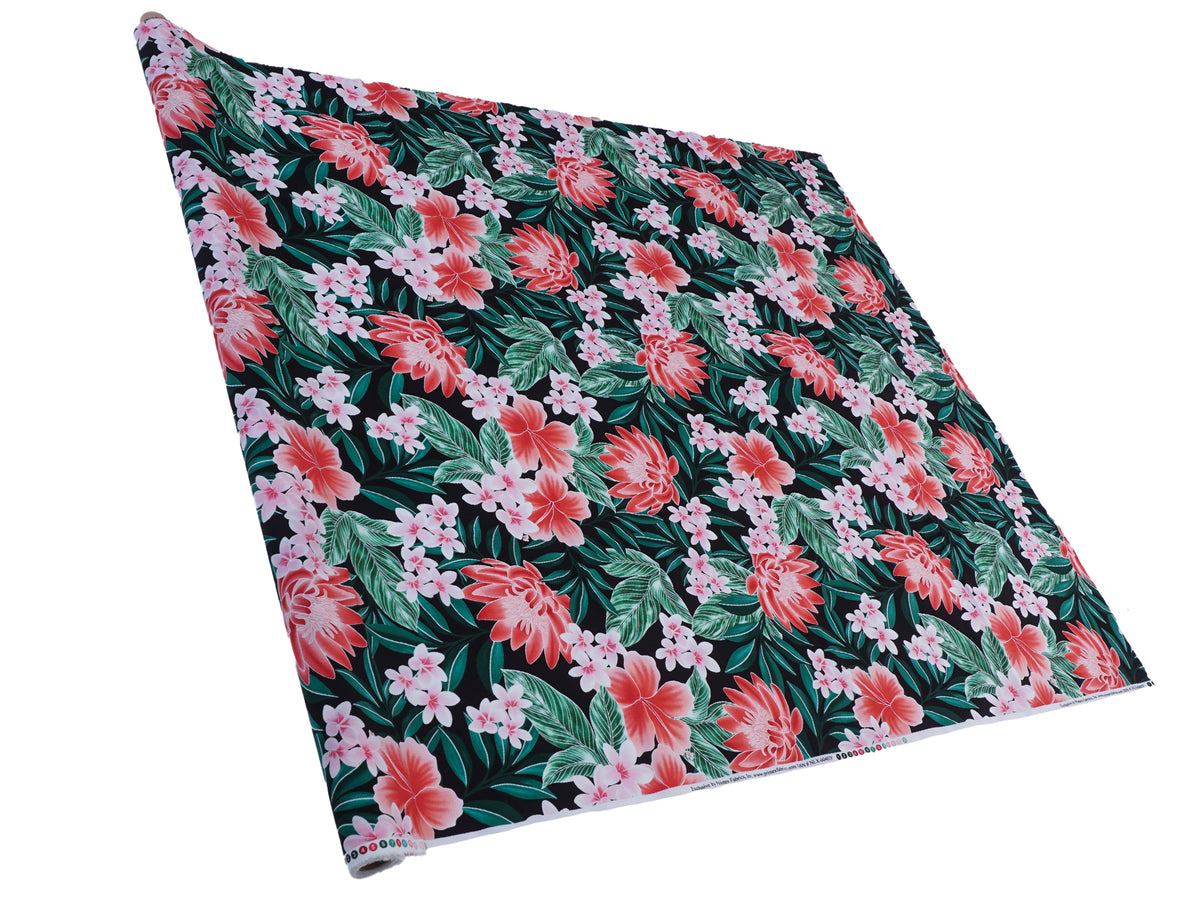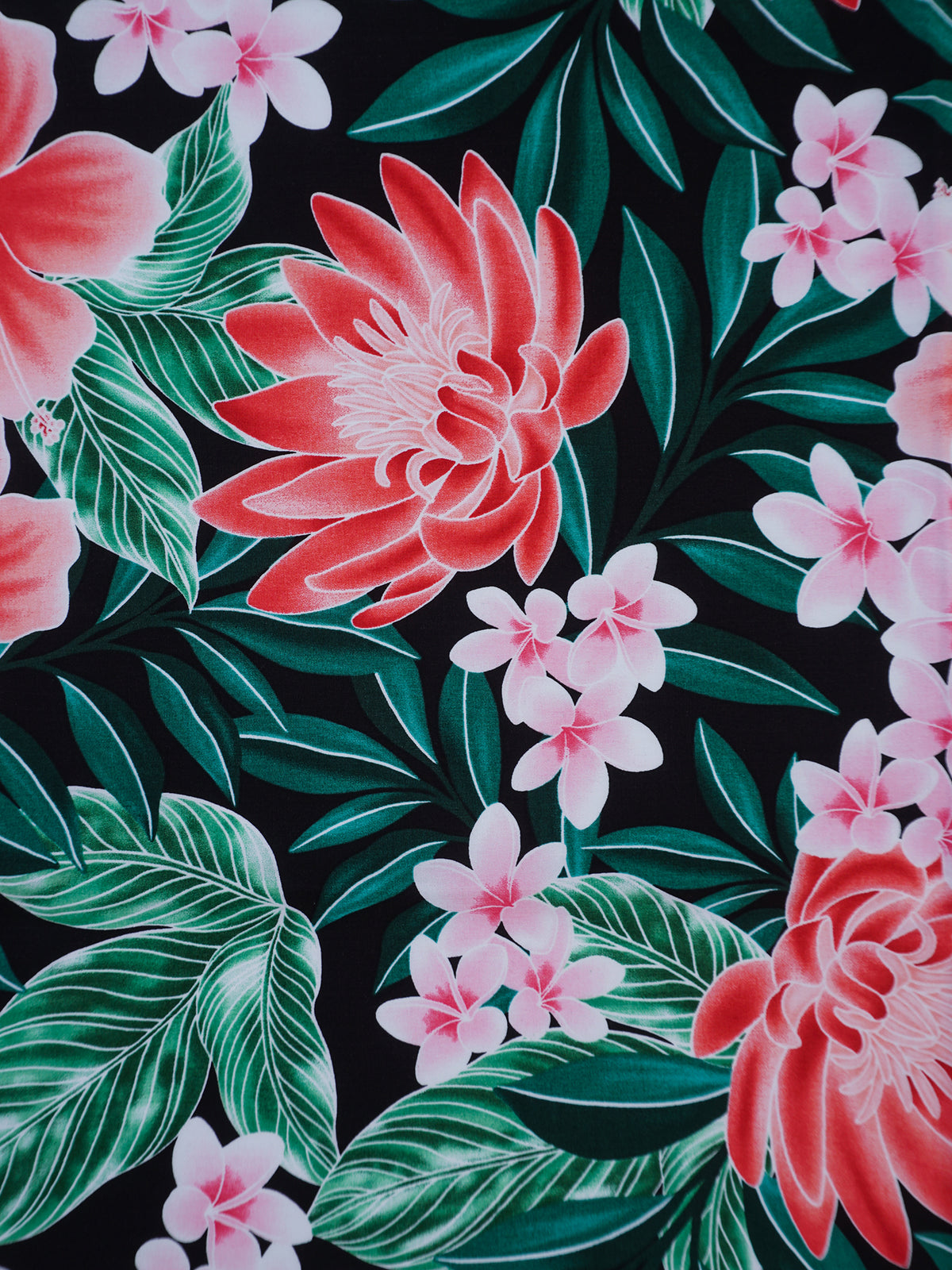 Hawaiian Fabric - Hibiscus & Protea Black 100% Cotton Poplin NLX-00407