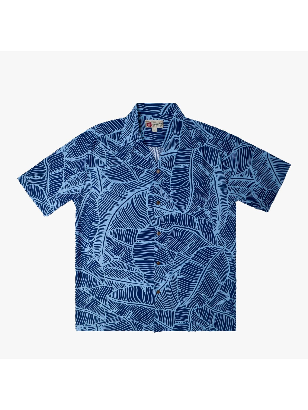 Hilo Hattie - Banana Leaf Navy Rayon Men's Hawaiian Shirt
