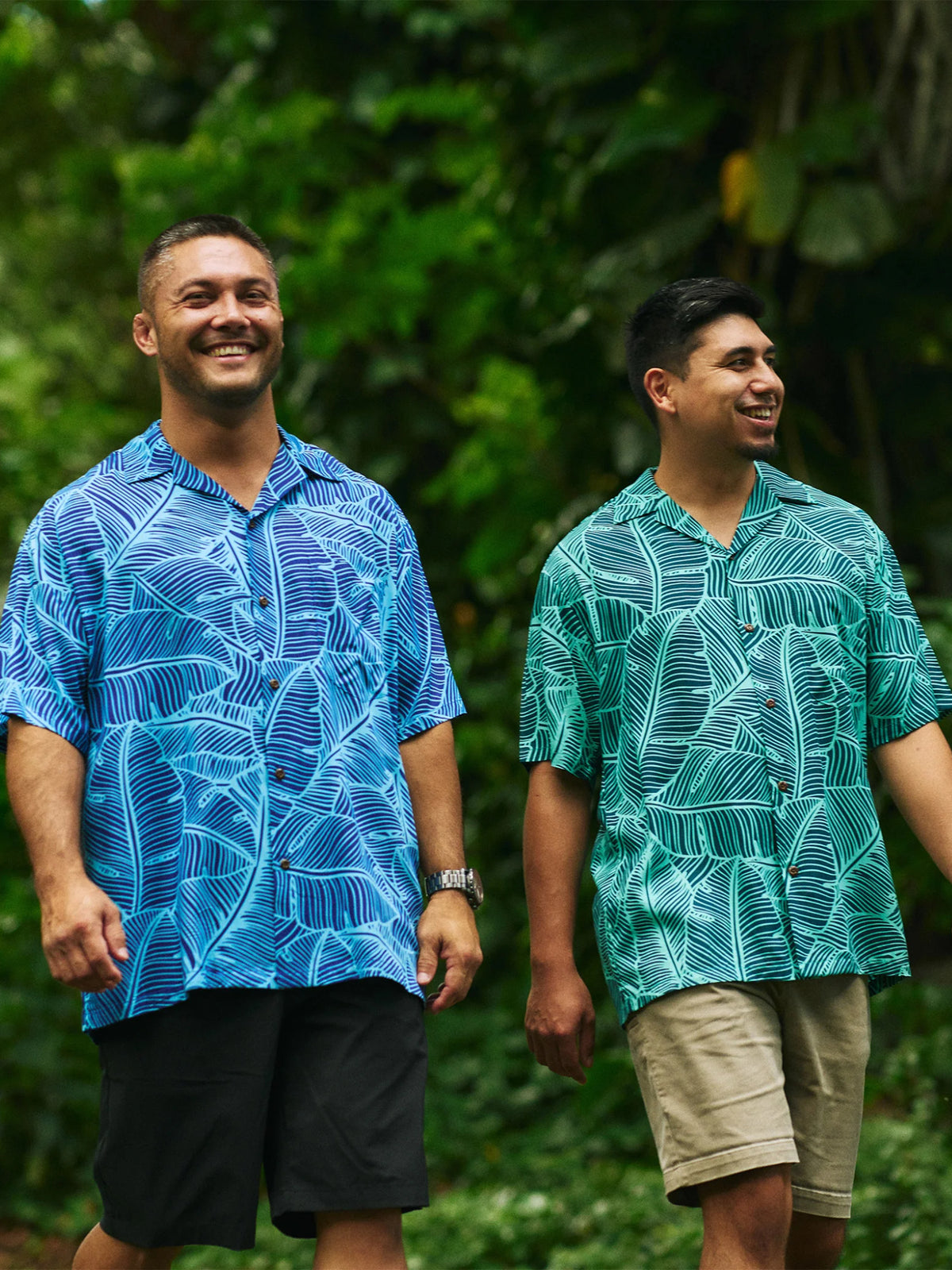 Stay cool and stylish in our Banana Leaf Aloha Shirt, crafted from luxurious 100% rayon for a smooth, comfortable drape. Featuring classic coconut buttons, this shirt brings a touch of island charm to any occasion. It’s a versatile piece designed to keep you looking effortlessly sharp with a hint of Aloha.