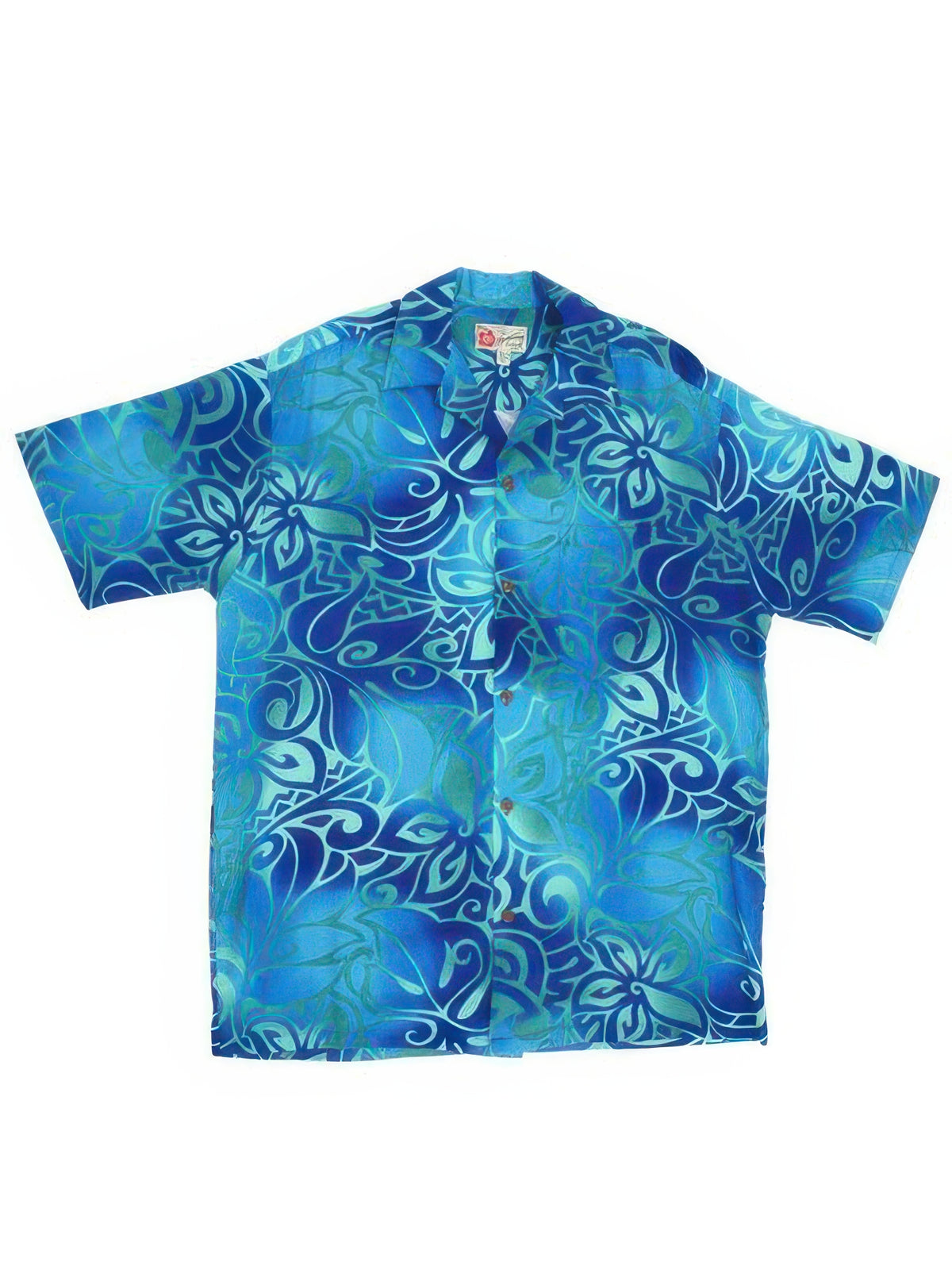 Experience the perfect combination of style and comfort with the Tribal Tiare Aloha Shirt. Made in Hawaii from 100% rayon, this shirt ensures exceptional coolness and breathability, making it ideal for warm days. Stay effortlessly stylish and relaxed no matter the occasion with this island-inspired classic.
