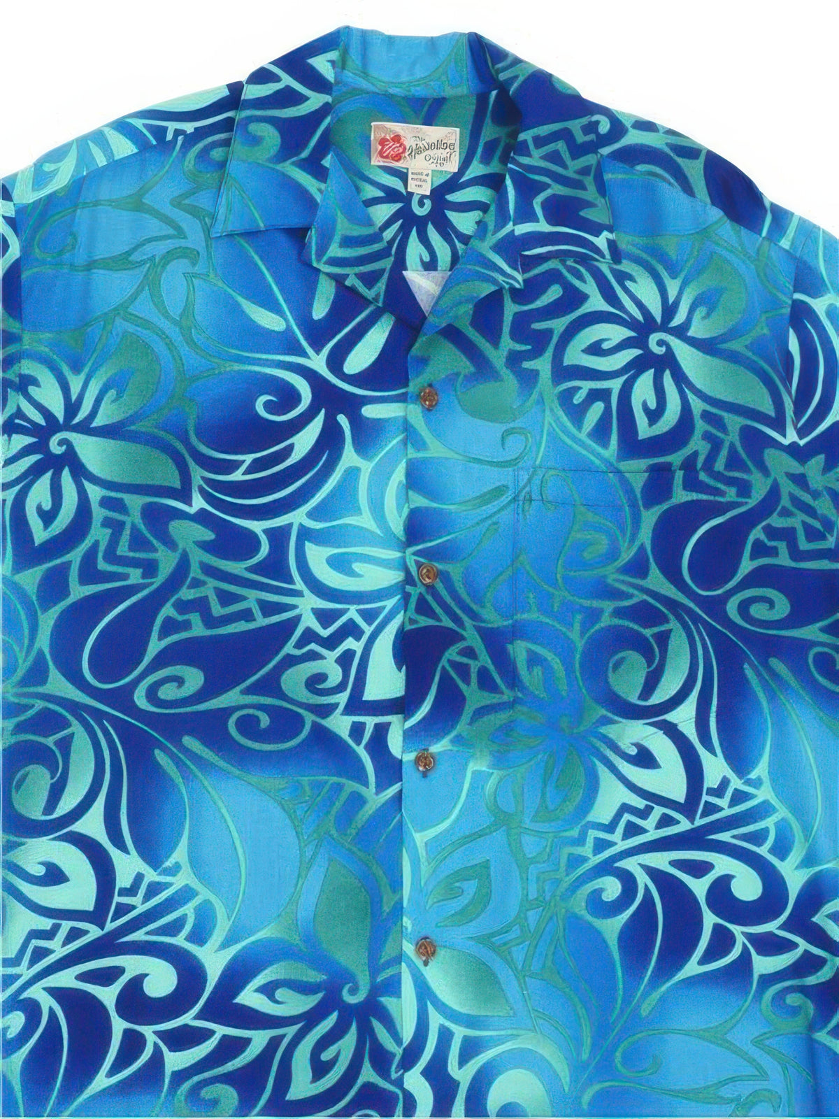Hilo Hattie - Tribal Tiare Navy Rayon Men's Hawaiian Shirt
