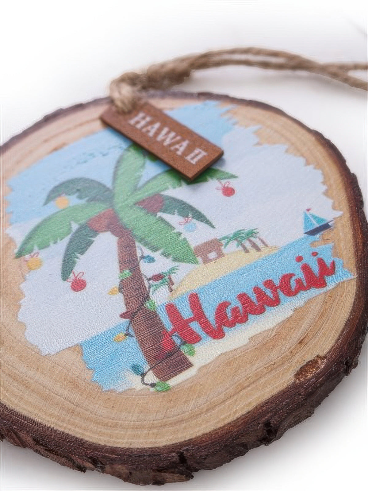 Embrace the spirit of aloha with our charming Wooden Decoration Ornament. This delightful piece showcases an adorable Hawaiian Palm Tree design, adding a unique and festive touch to your tree.