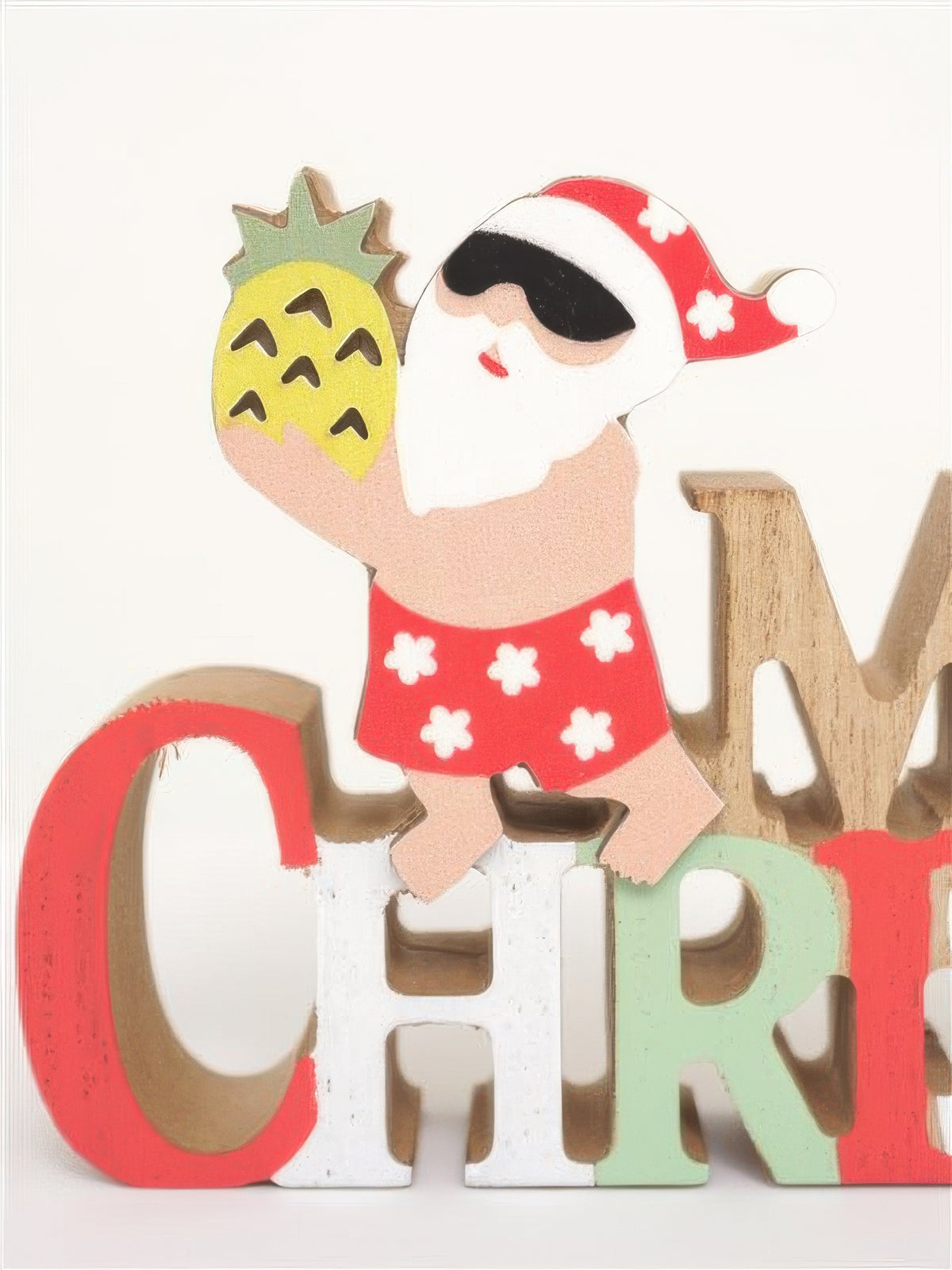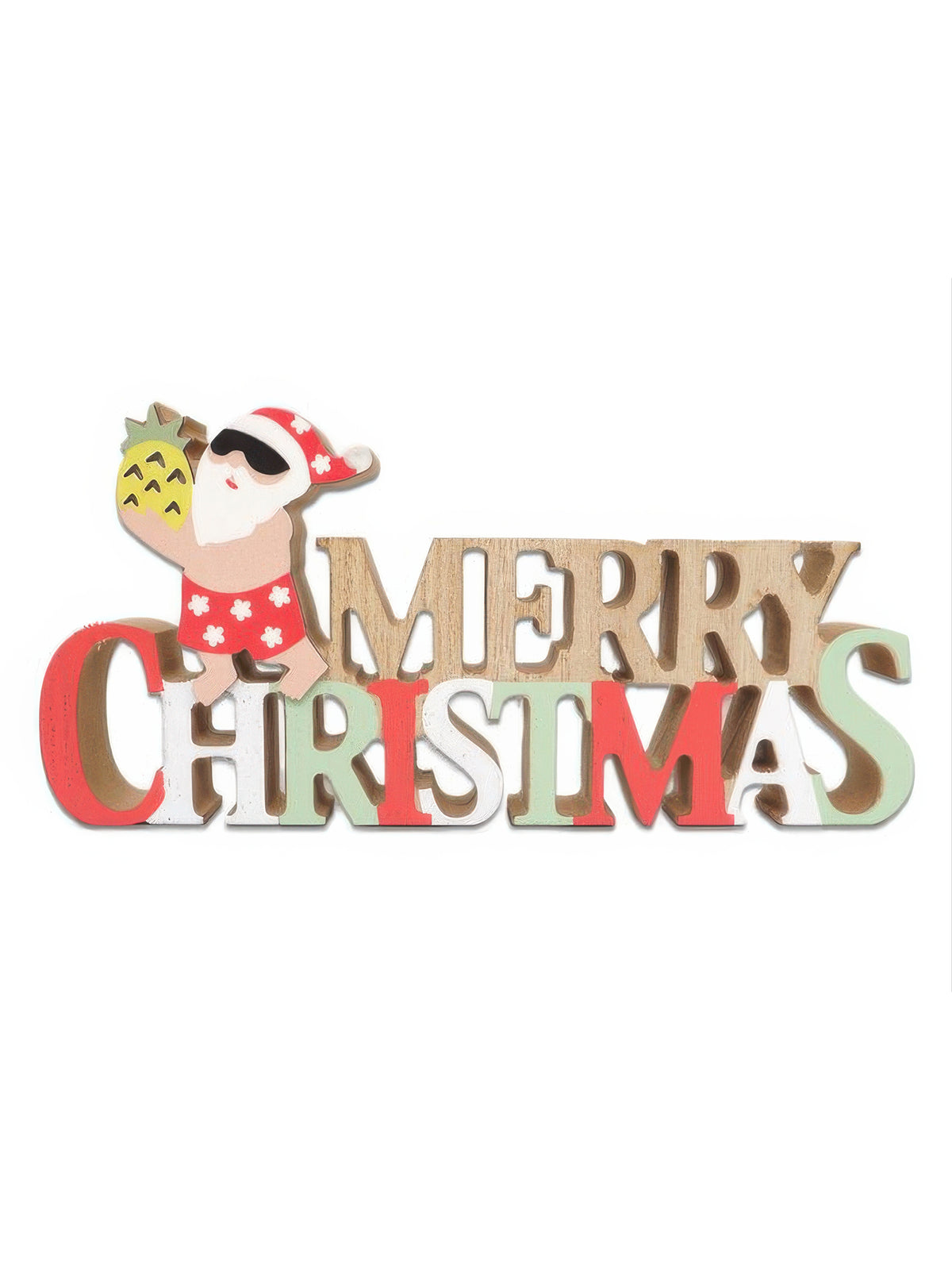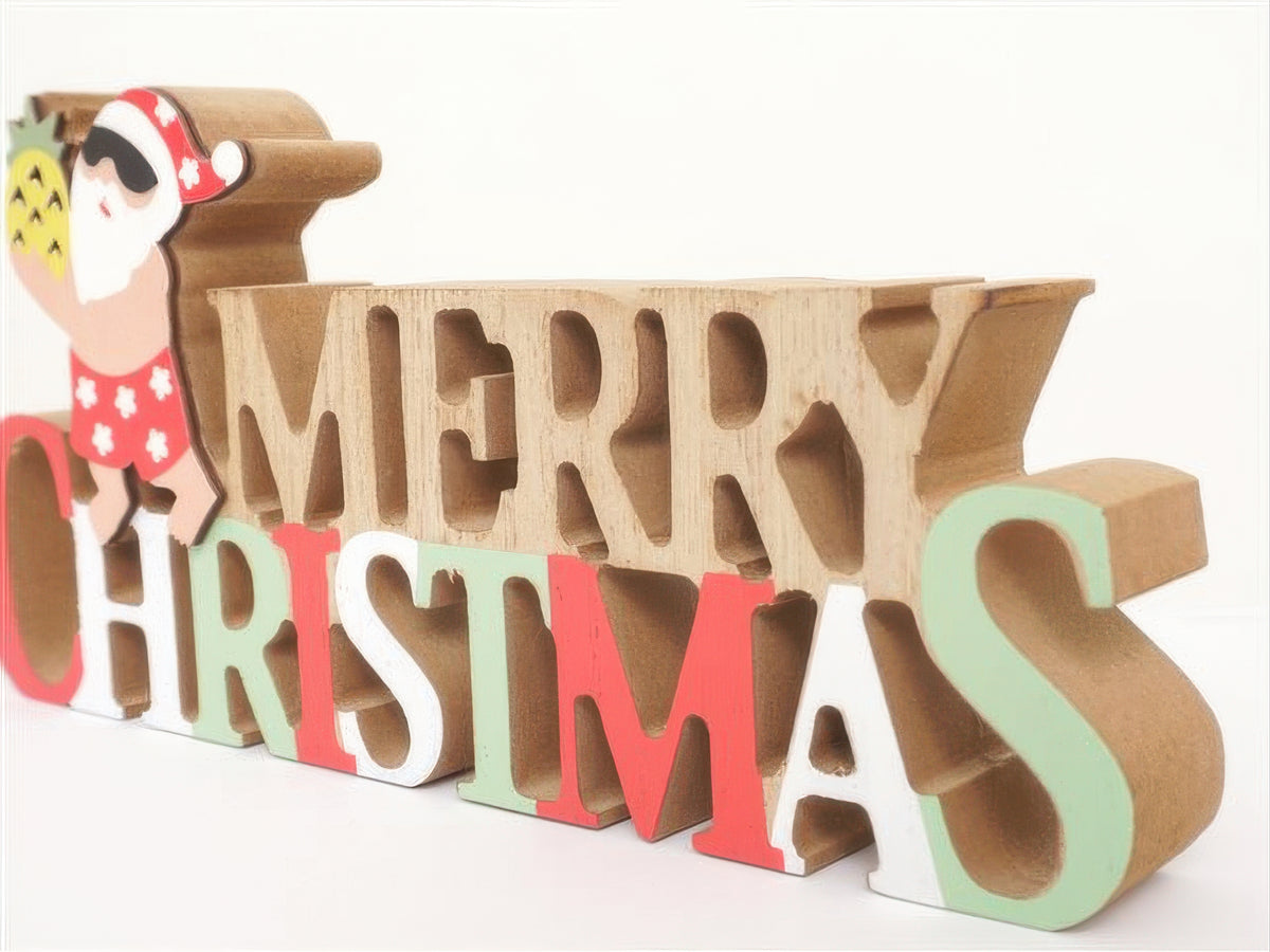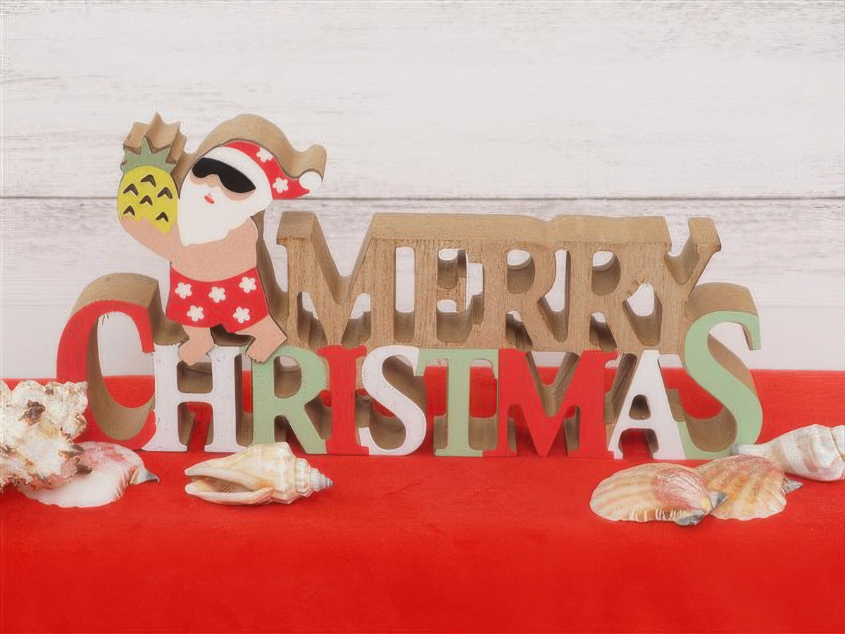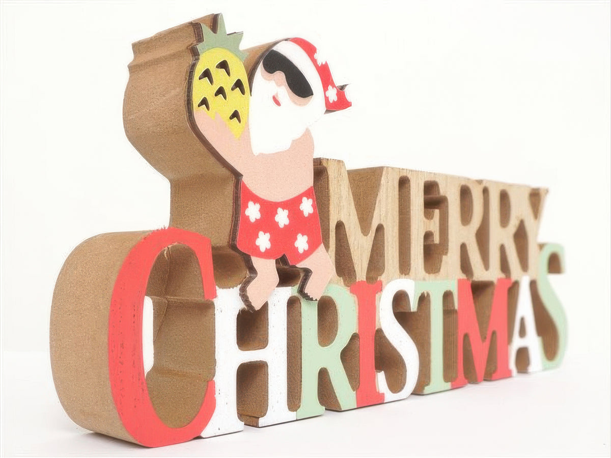 Ka Makani - Pineapple Santa with Merry Christmas Hawaiian Tabletop Wooden Block Sign
