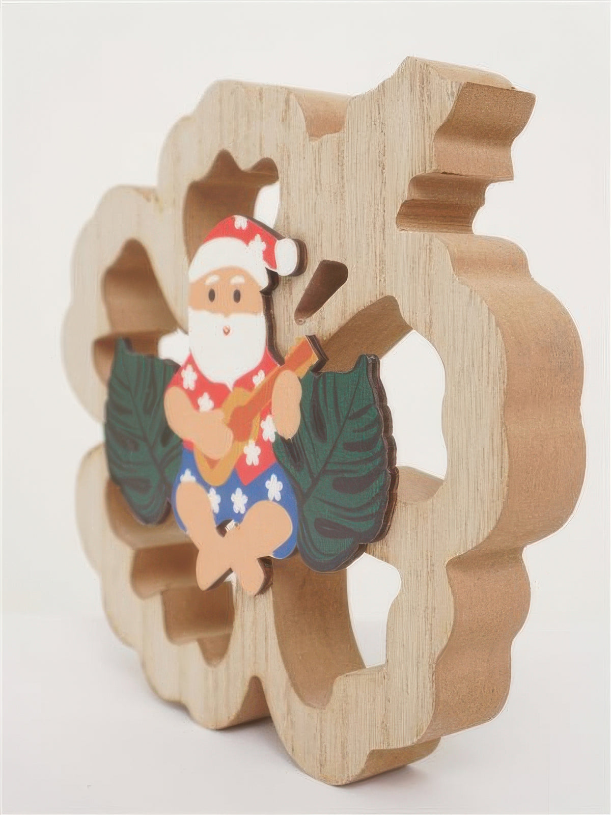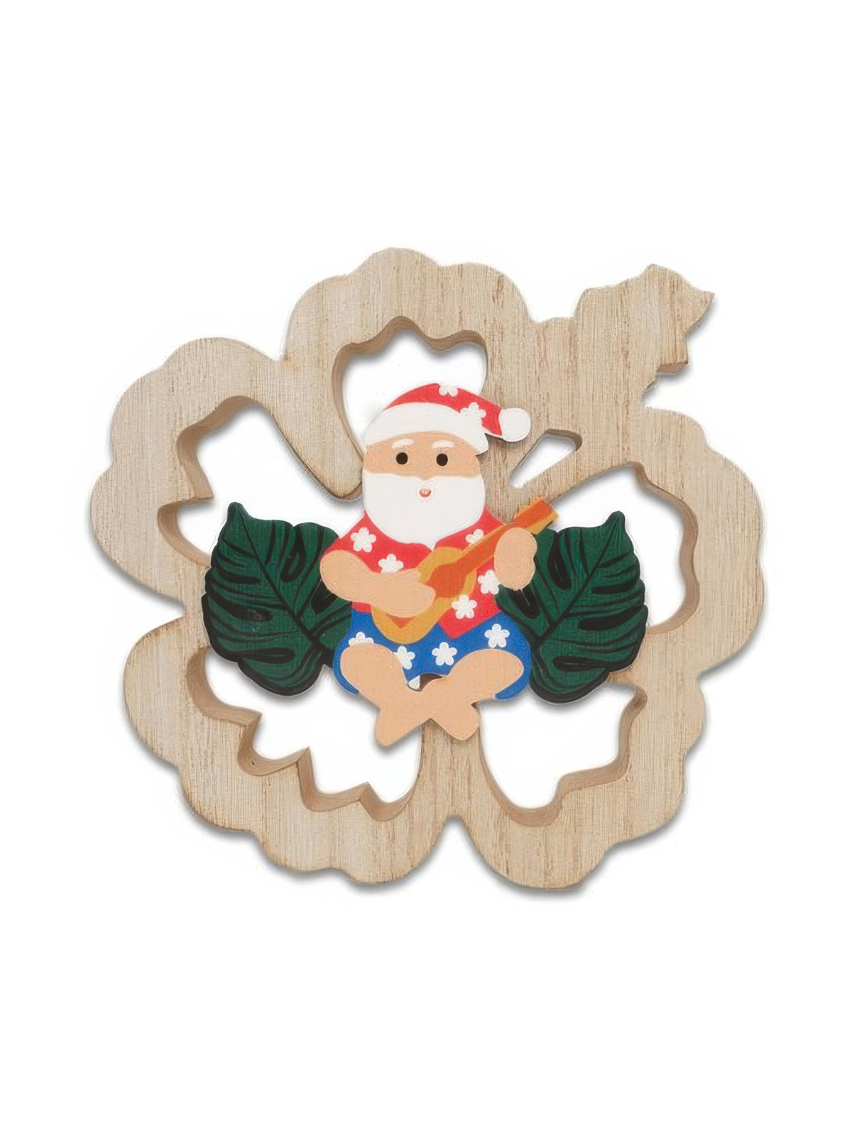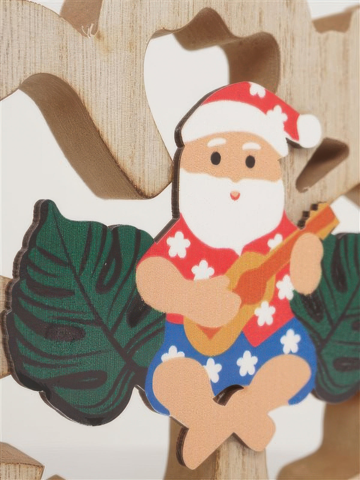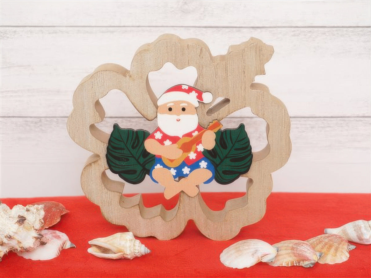 Ka Makani - Santa with Leaf Hawaiian Tabletop Wooden Block Sign