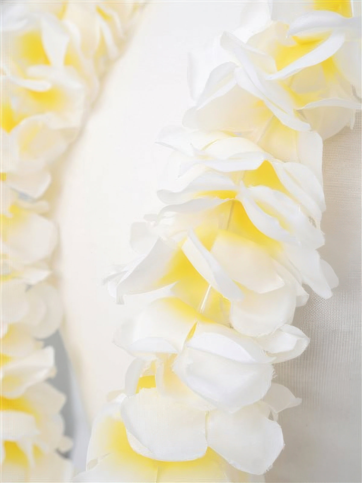 Ka Makani proudly presents you with beautiful artificial White & Yellow Kahuna Leis. Our leis have great detail such that they look quite real. These leis can make a great gift for any celebratory event, such as birthdays, weddings, graduations, and promotions.