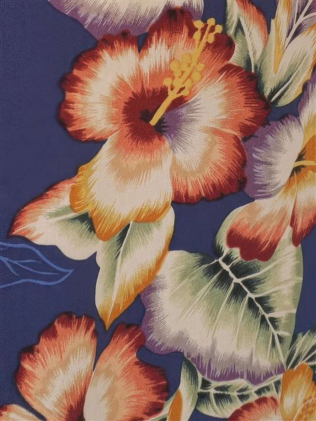 KY's - Vintage Anthurium Navy Cotton Hawaiian Long Muumuu Dress