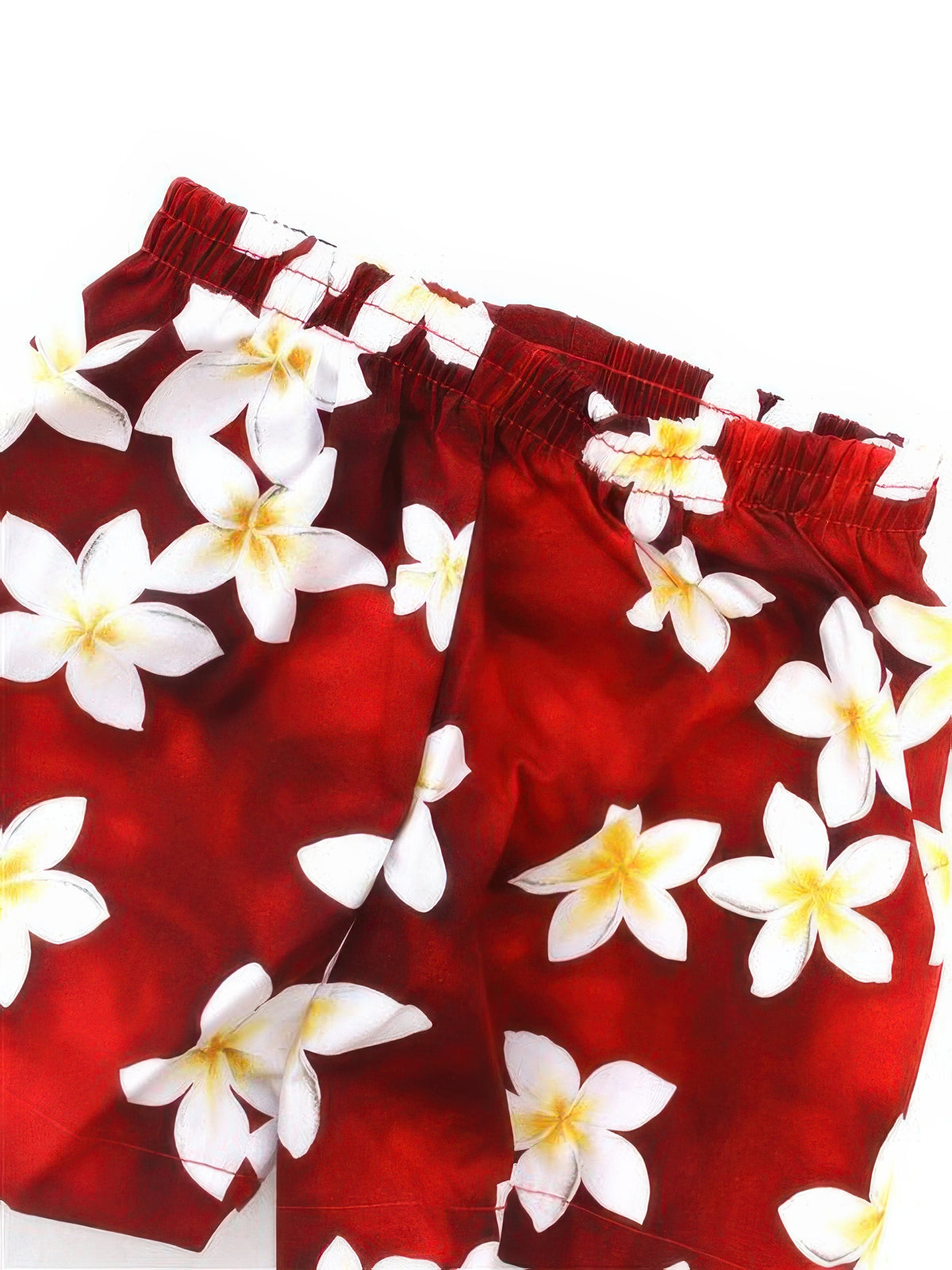 Royal Hawaiian Creations - Plumeria Red Cotton Boys Hawaiian Cabana Set
