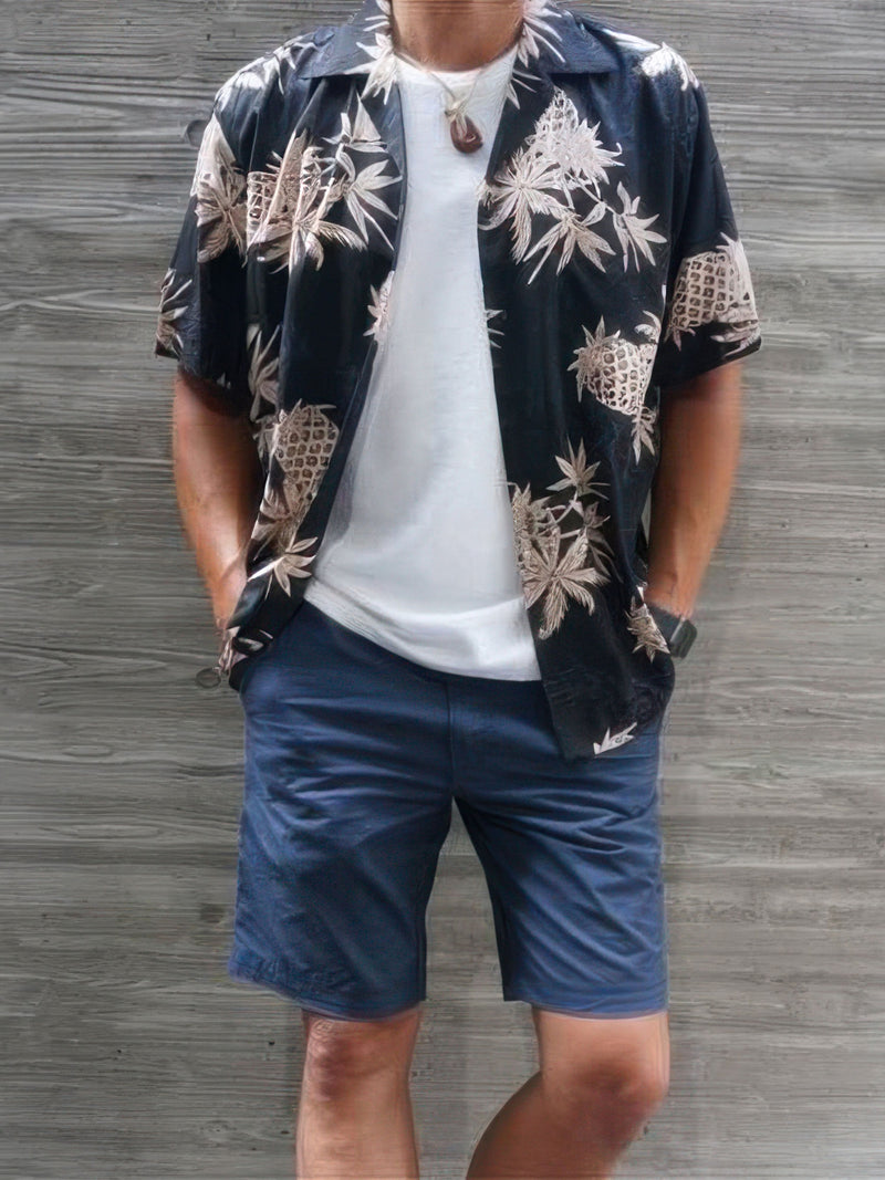 Paradise Found - Retro Pineapple Midnight Rayon Men's Hawaiian Shirt