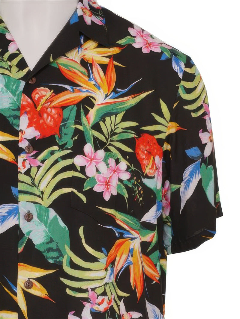 Two Palms - Passion Paradise Black Rayon Men's Hawaiian Shirt