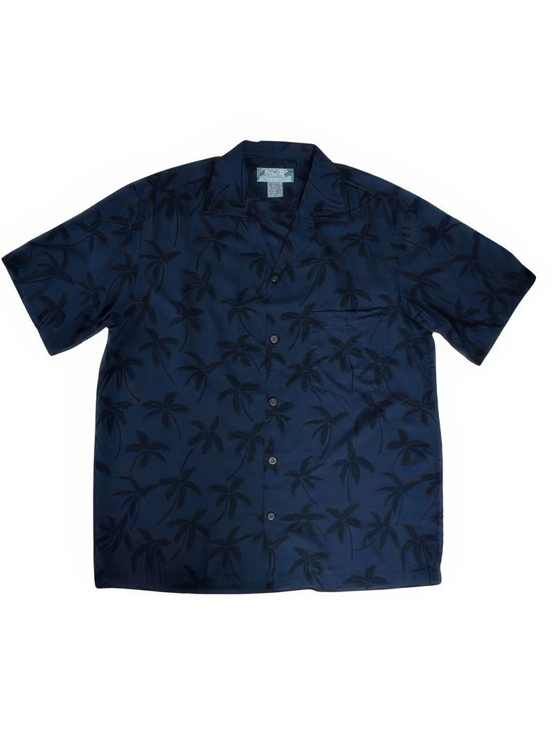 Two Palms - Palm Tree Black Rayon Men's Hawaiian Shirt