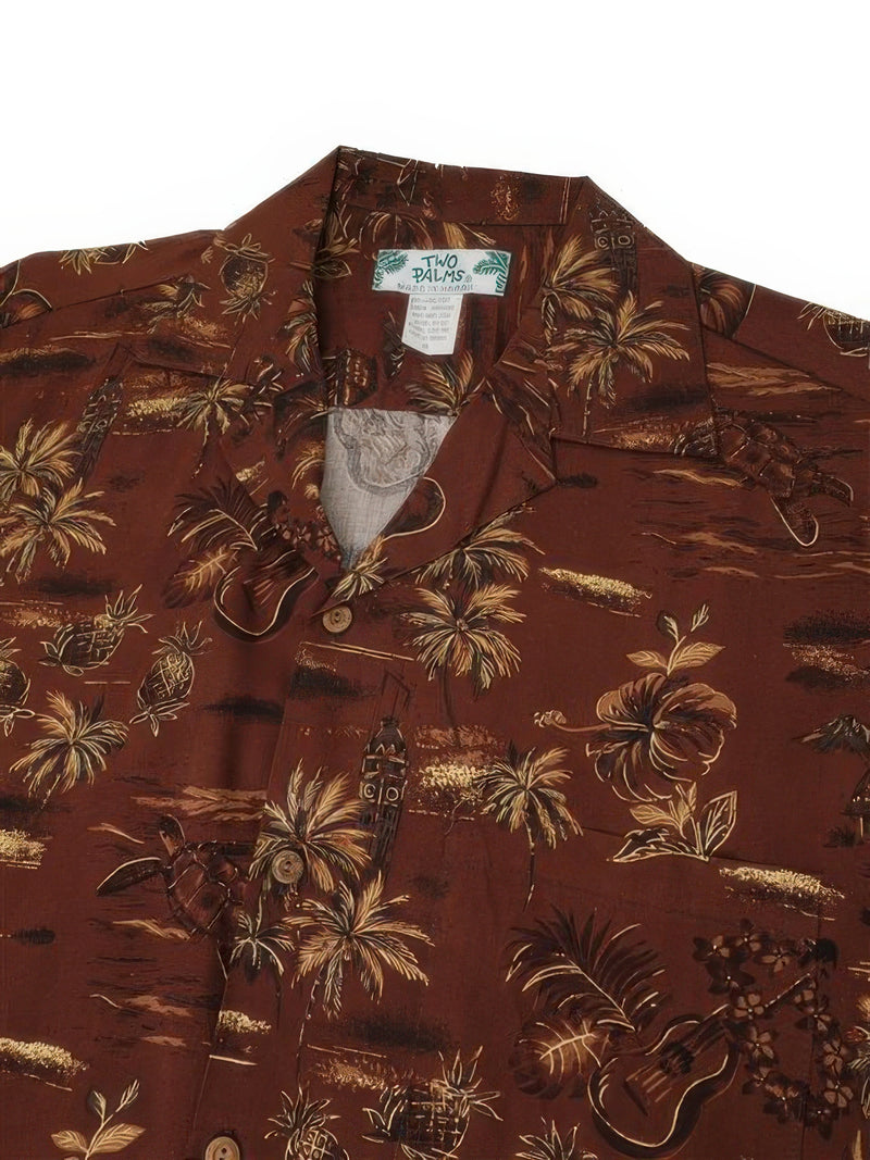 Two Palms - Golden Vintage Brown Rayon Men's Hawaiian Shirt