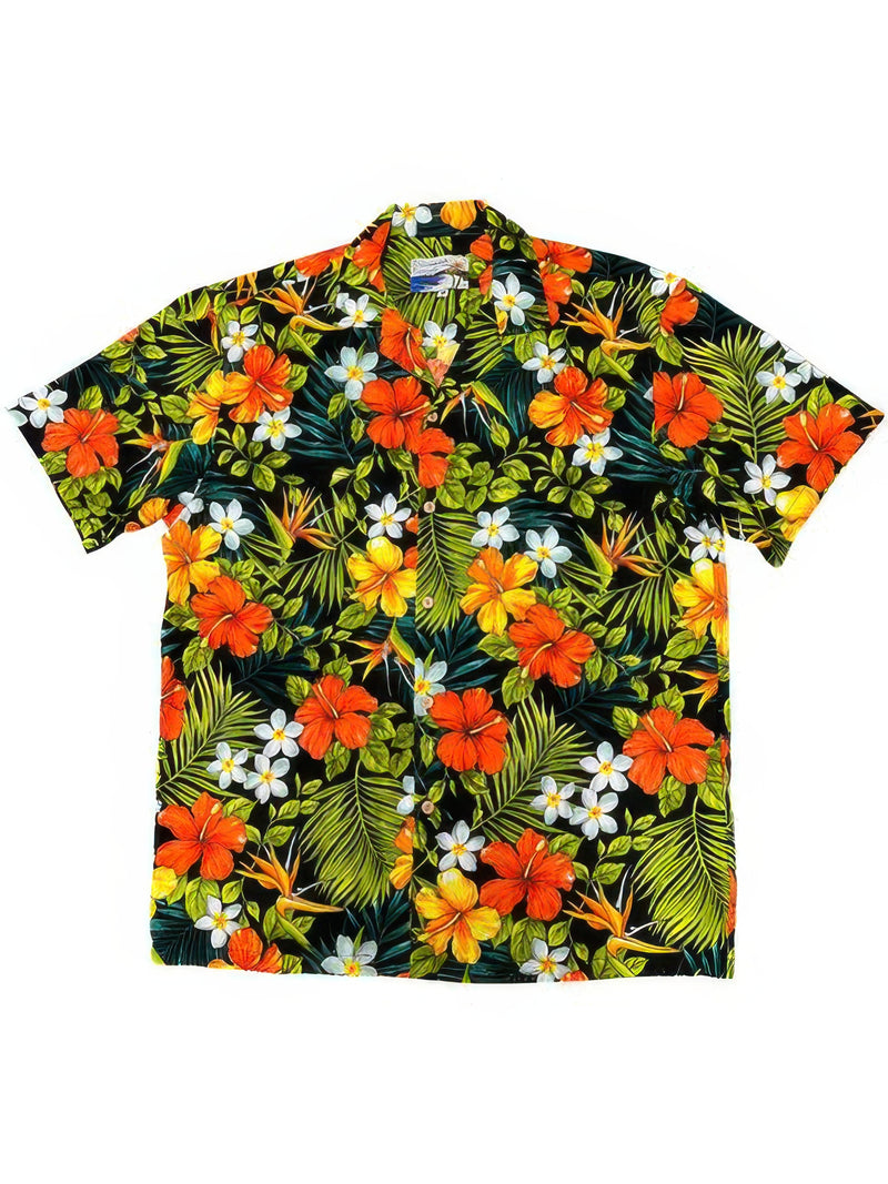 Waimea Casuals - Tropical Garden Black Cotton Men's Hawaiian Shirt