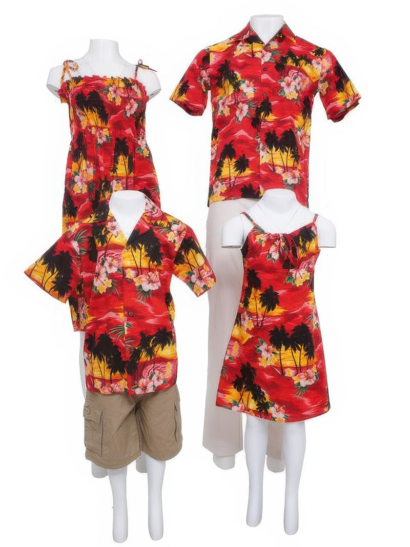 Pacific Legend - Sunset Red Cotton Toddlers Hawaiian Bungee Dress