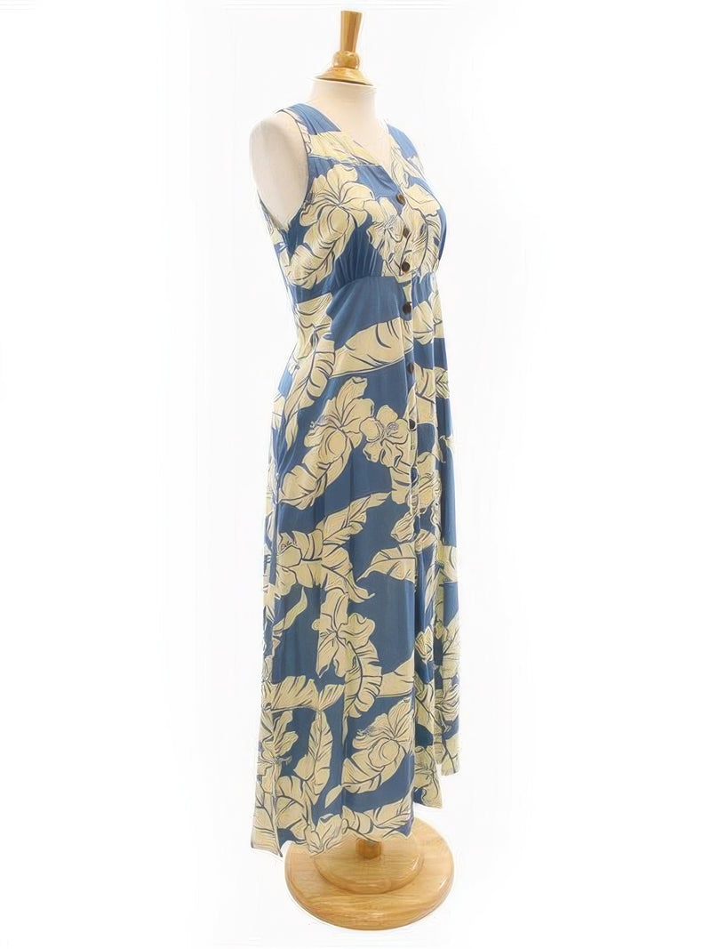 Paradise Found - White Ginger Khaki Rayon Hawaiian Long Dress