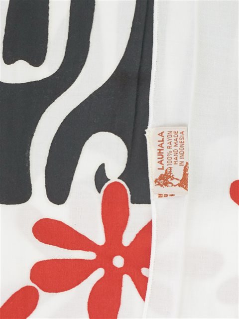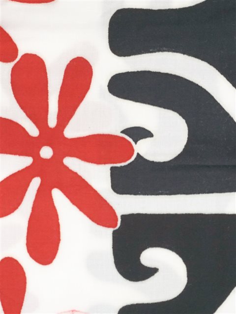 Lauhala Trading - Tattoo Tiare White, Black & Red Half Size Hand Printed Pareo Sarong