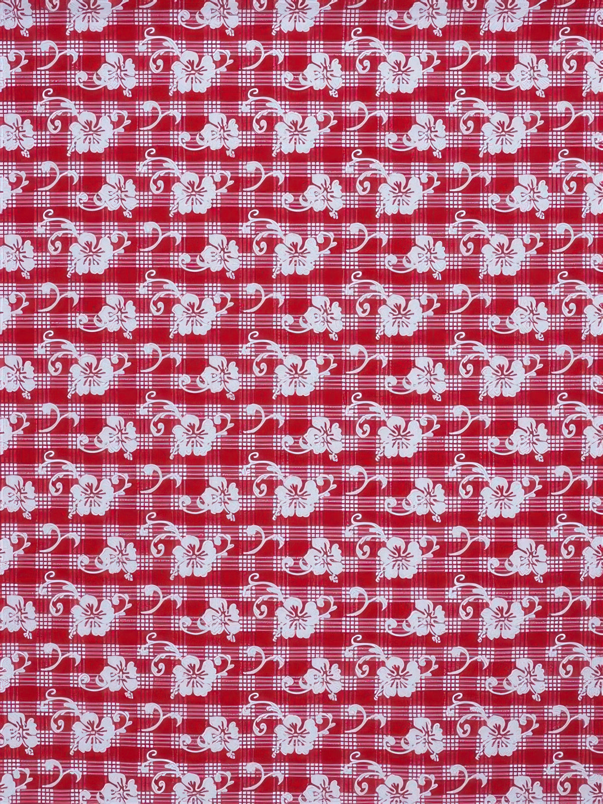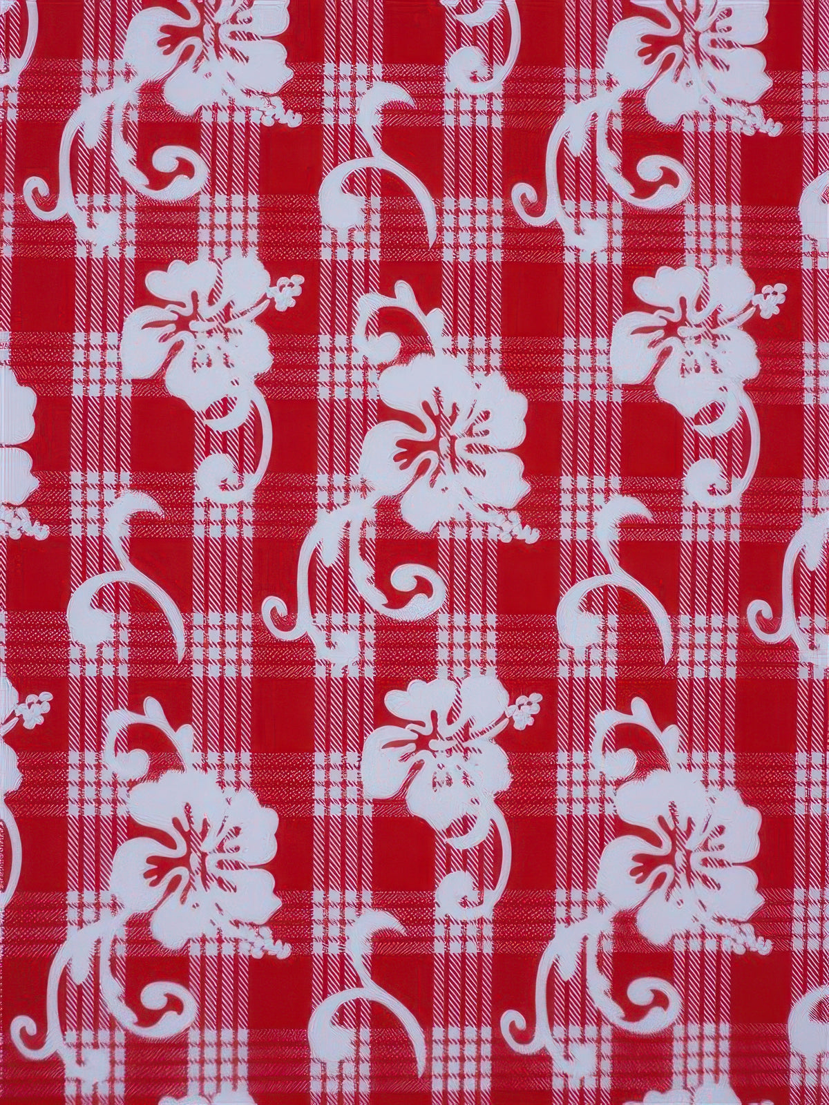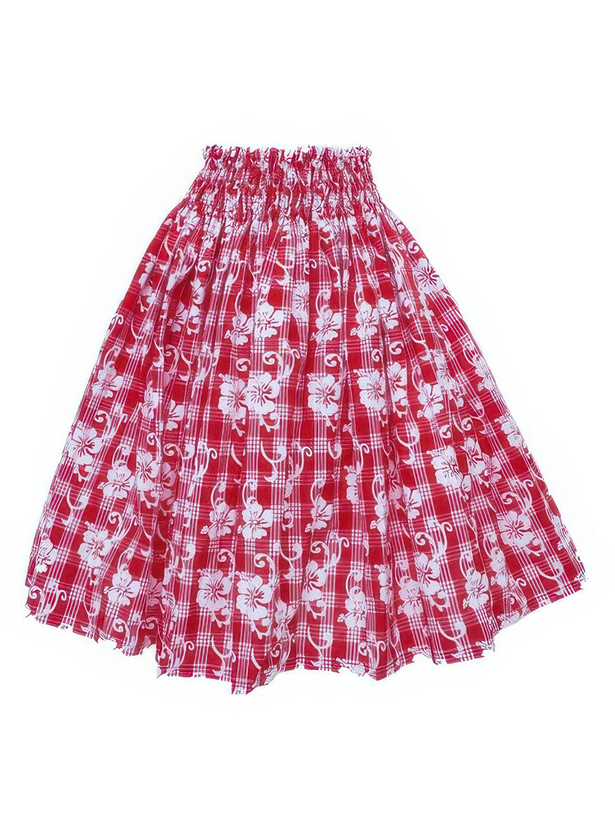 Ka Makani - Hibiscus Palaka Red Poly Cotton Hula Pau Skirt / 3 Bands