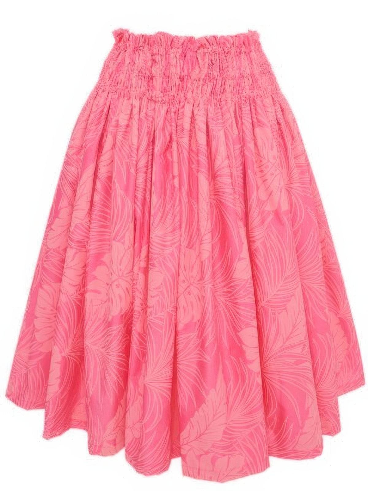 Ka Makani - Monstera Pink Poly Cotton Hula Pau Skirt / 3 Bands