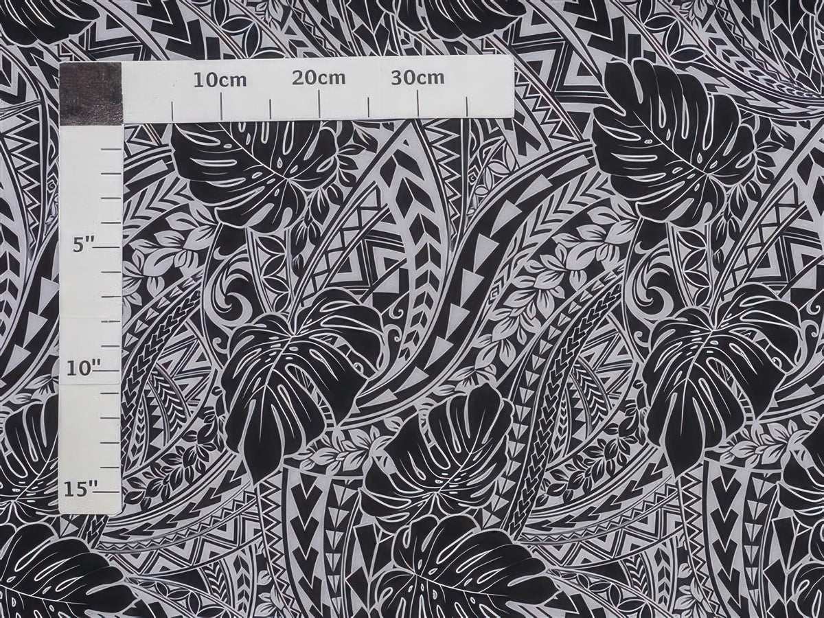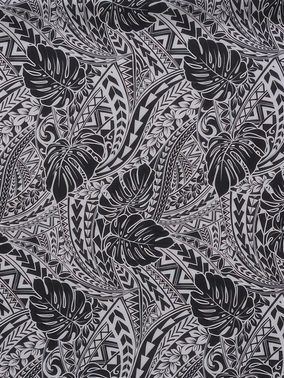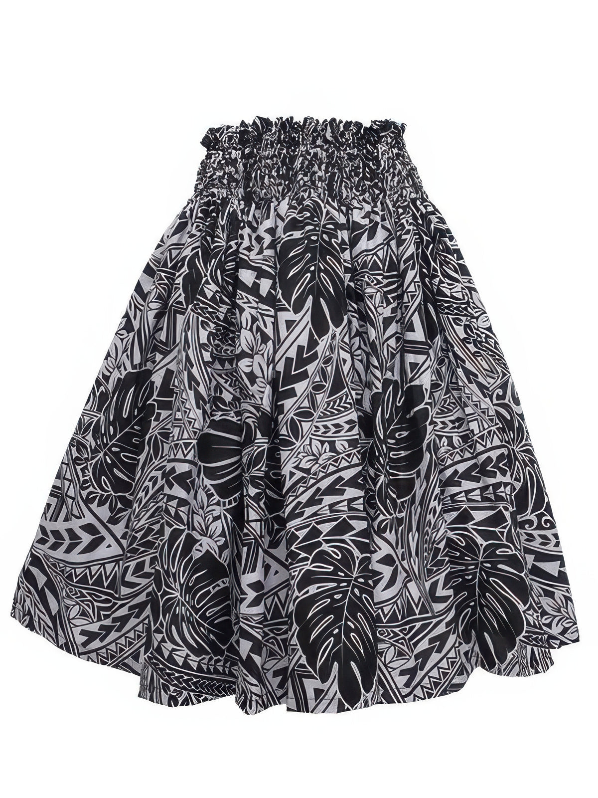 Ka Makani - Polynesian Monstera Gray Poly Cotton Hula Pau Skirt / 3 Bands
