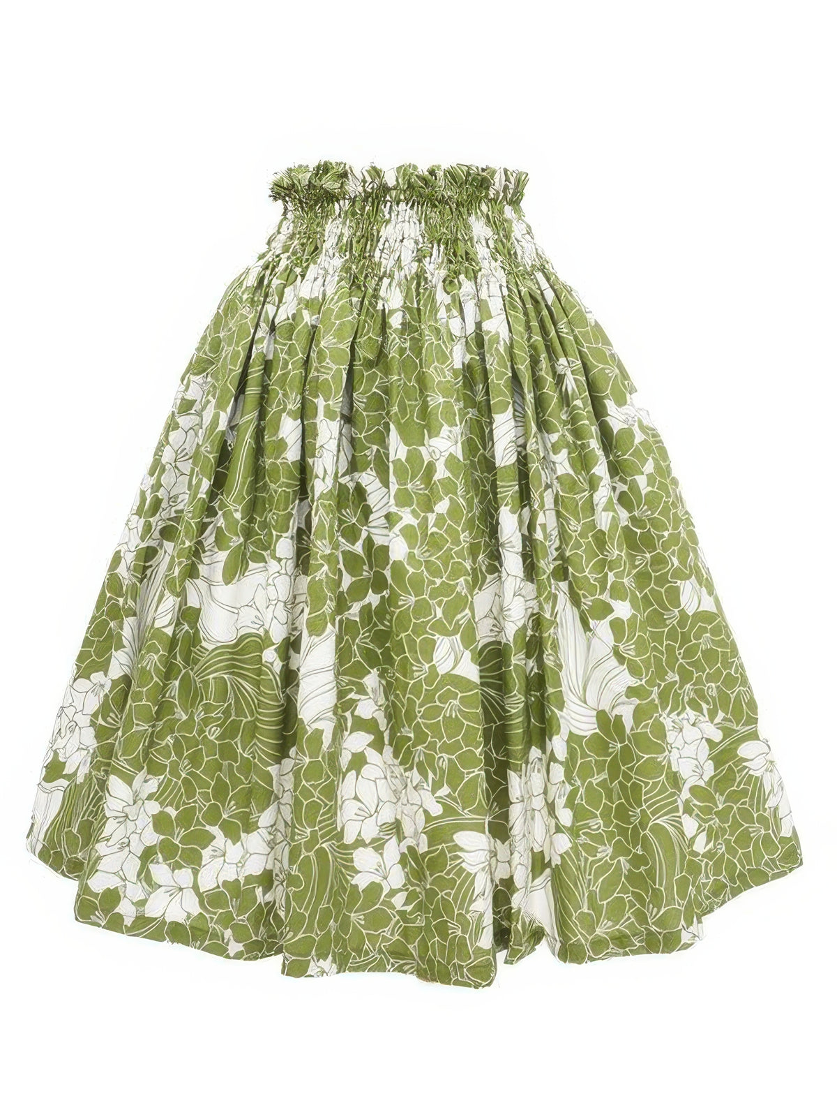 Ka Makani - Puakenikeni Sage & Cream Poly Cotton Hula Pau Skirt / 3 Bands
